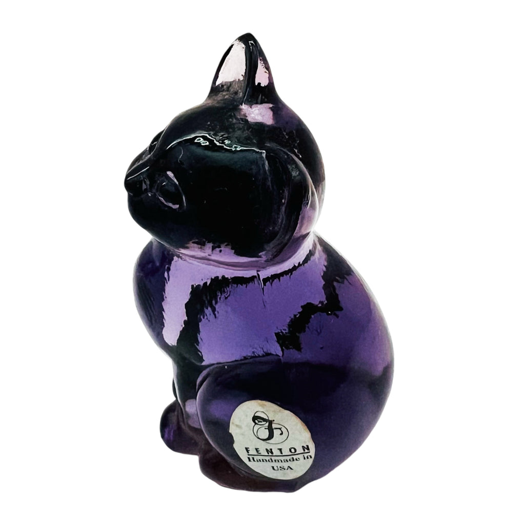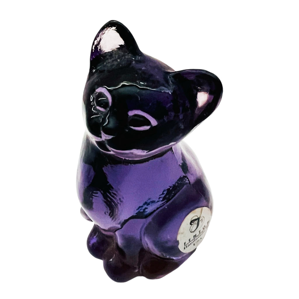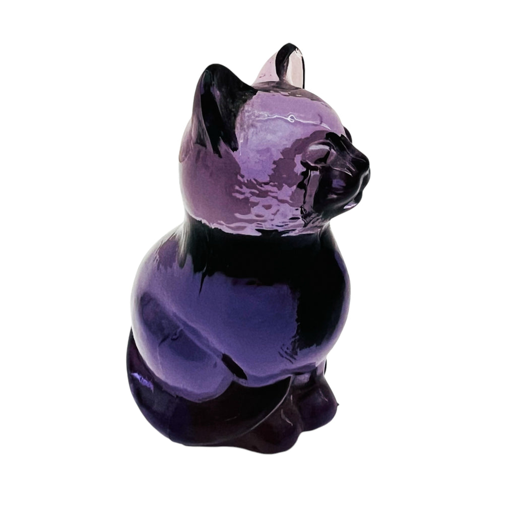 Fenton Burmese Sitting Kitty Cat Art Purple Glass Figurine