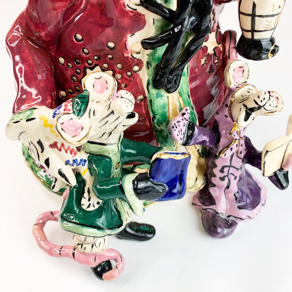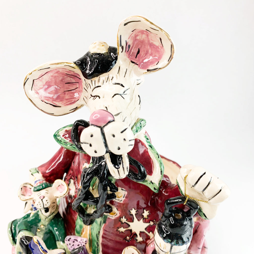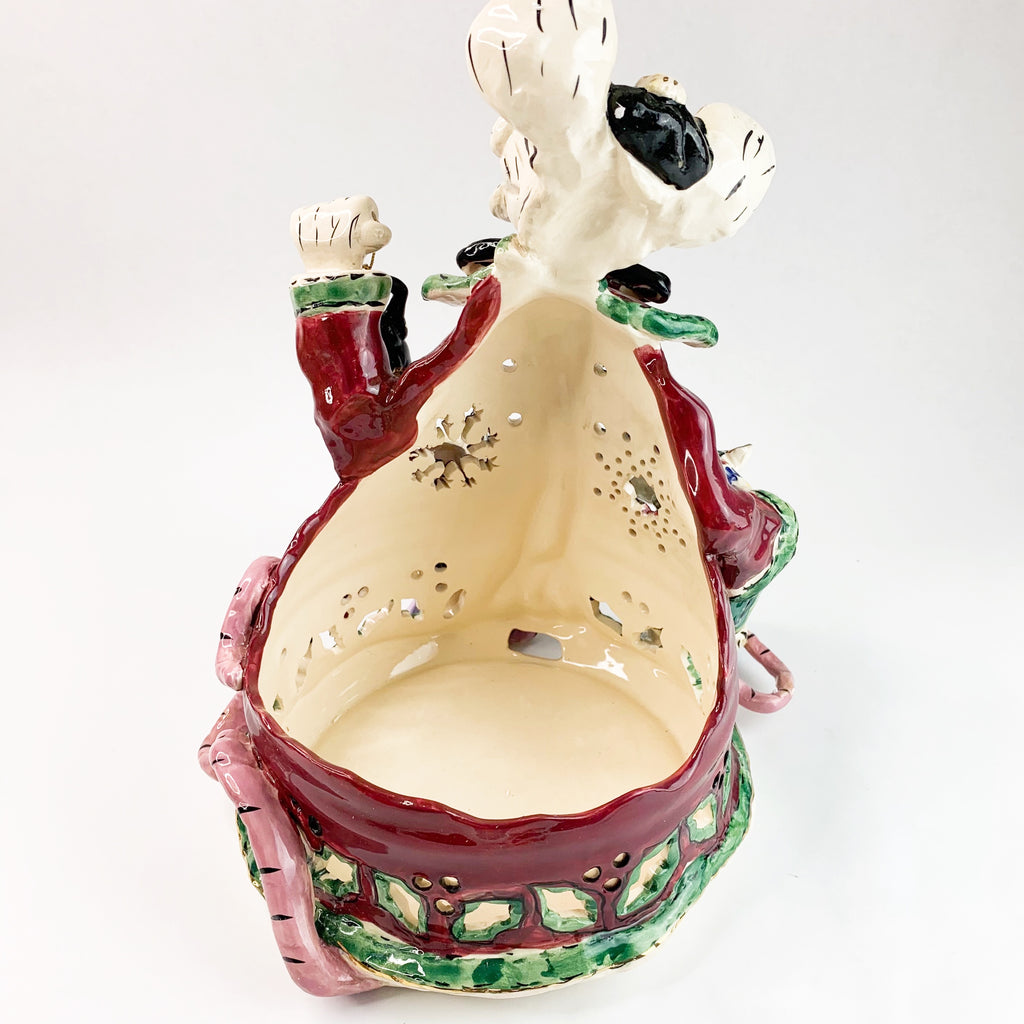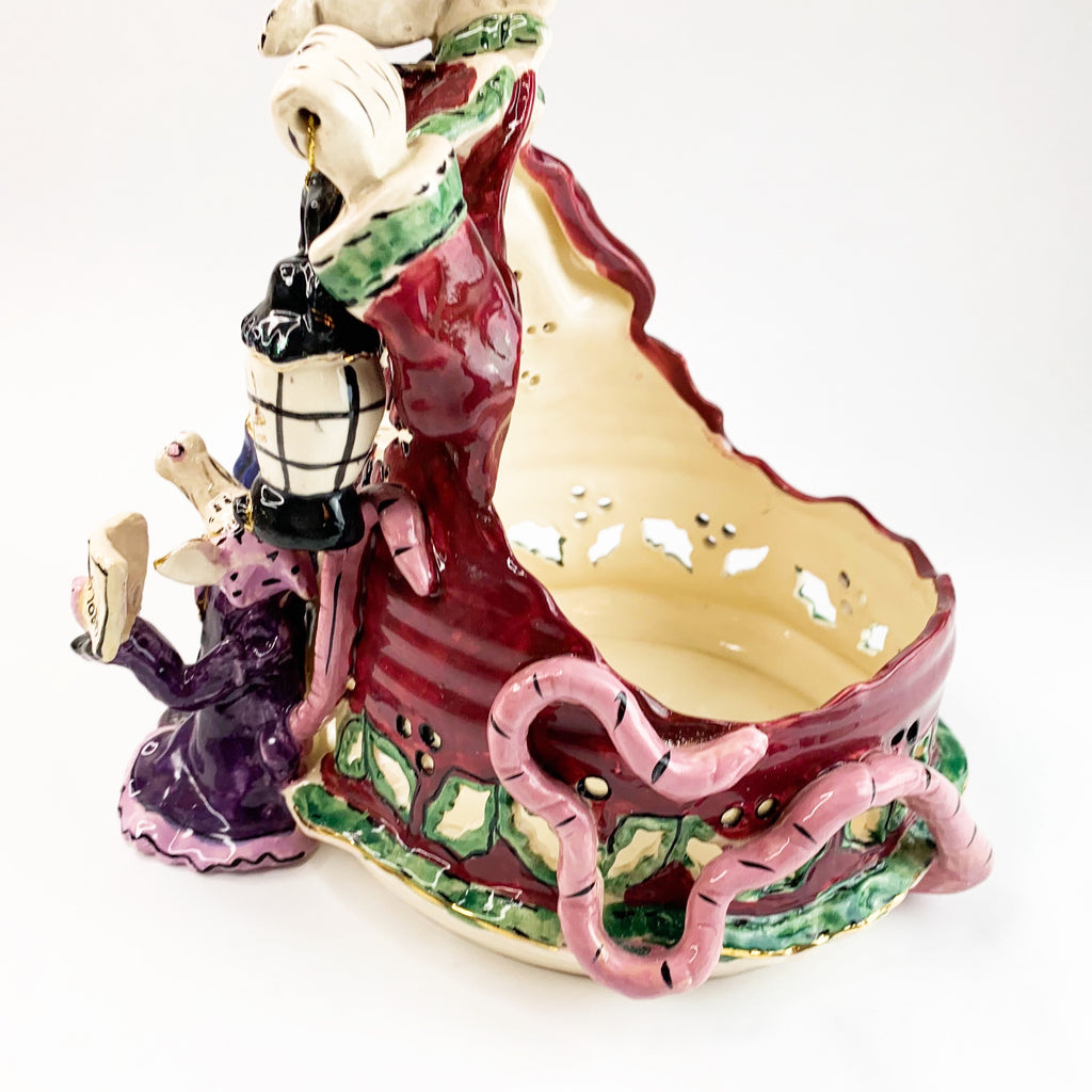 Hawaii Bananna Patch Studio Medallion Glazed Round Ceramic Red and White Plate