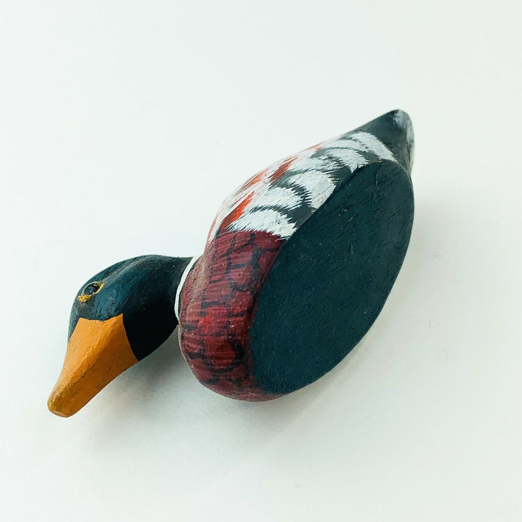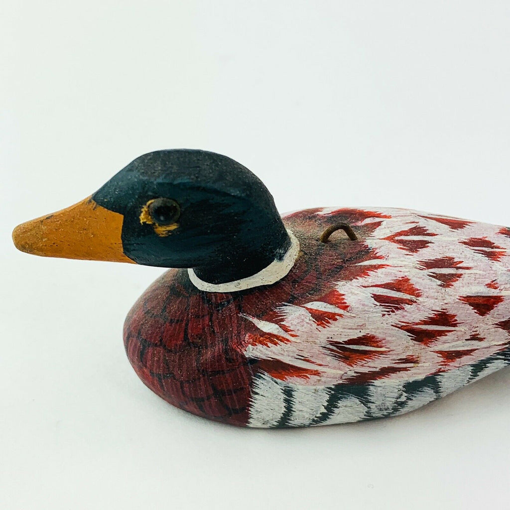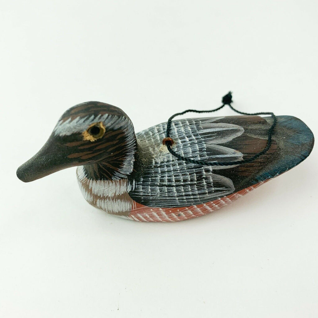 Mini Duck Miniature Wooden Decoy Hand Carved Bird Ornament Figurine