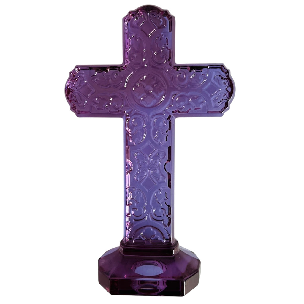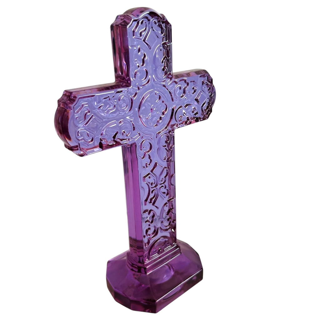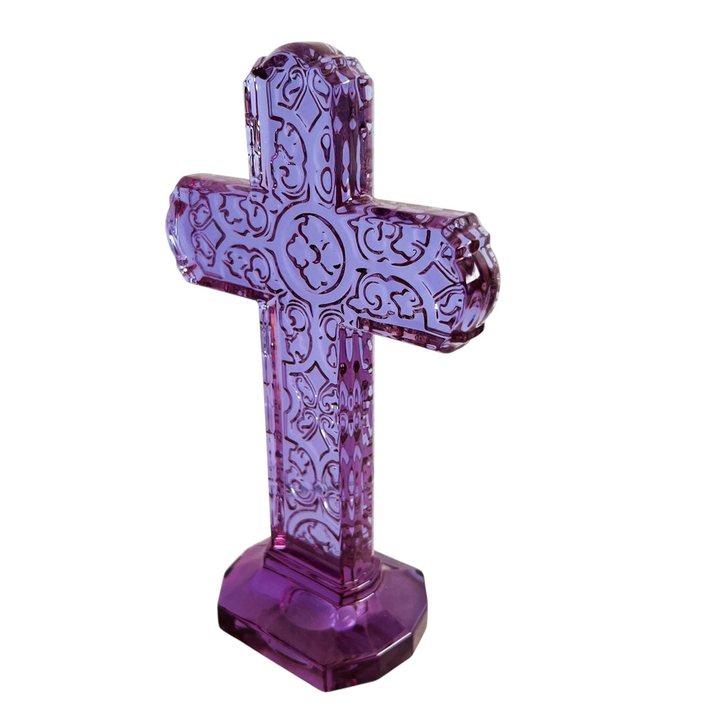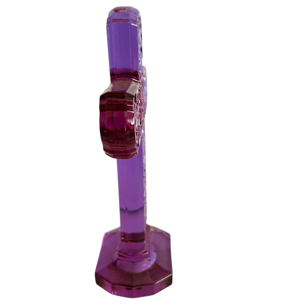 Religious Cross Standing Purple Crystal Art Glass Statue