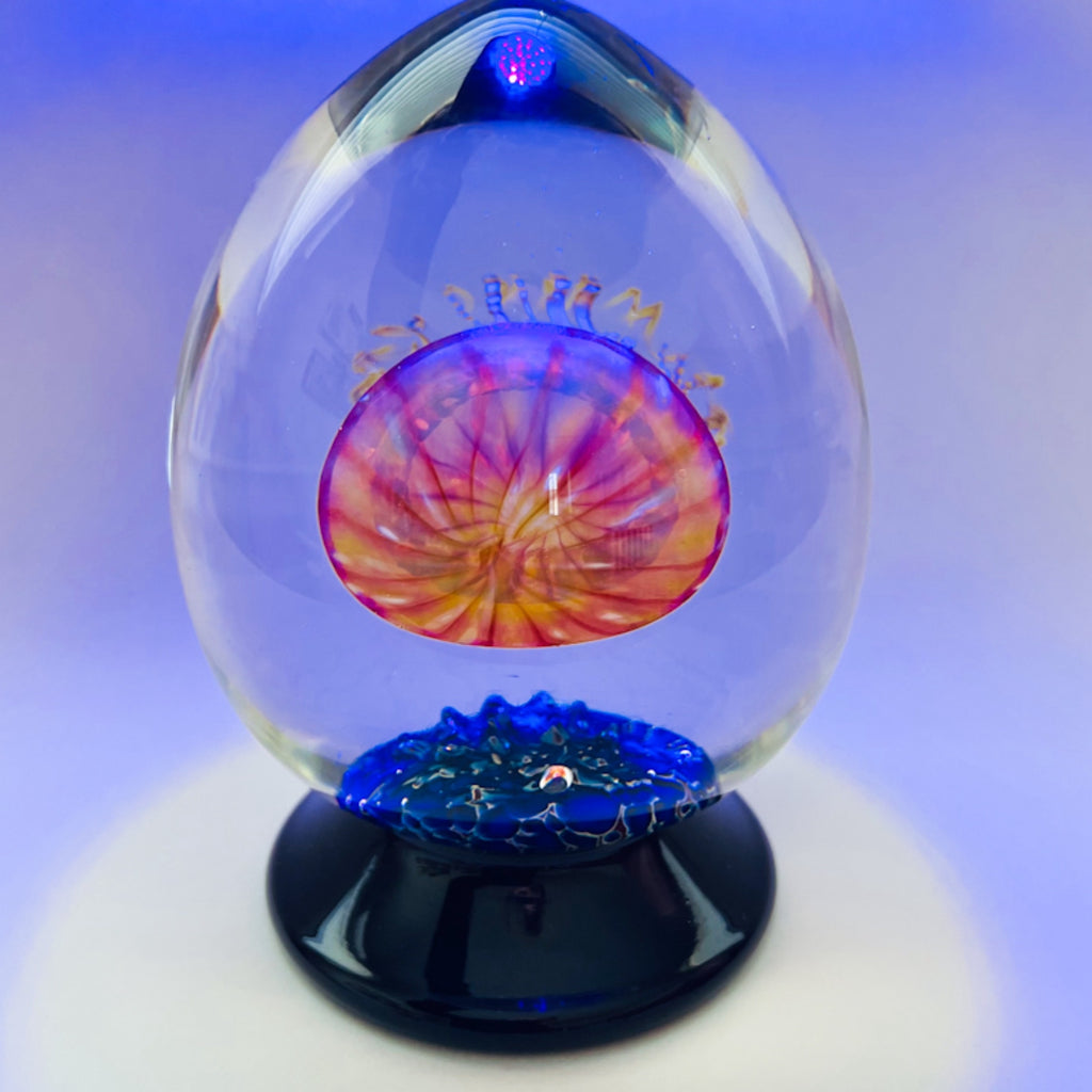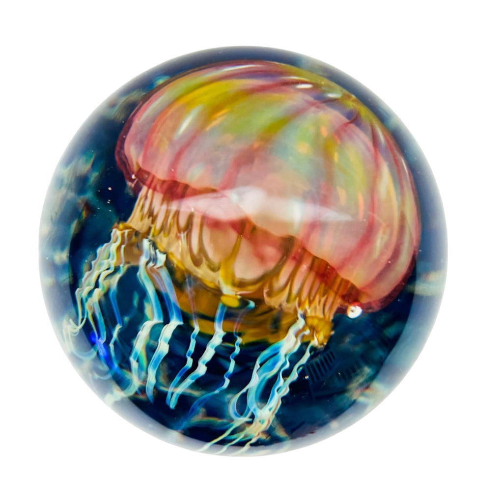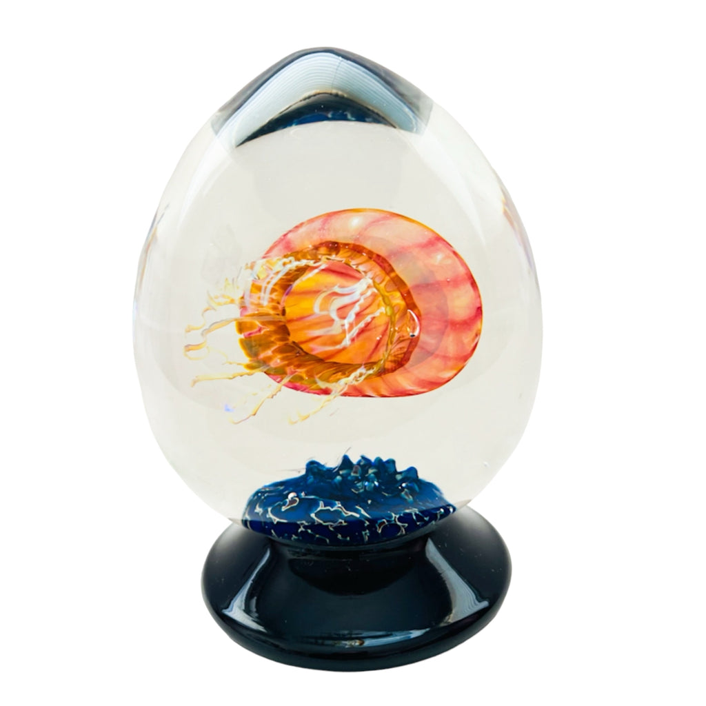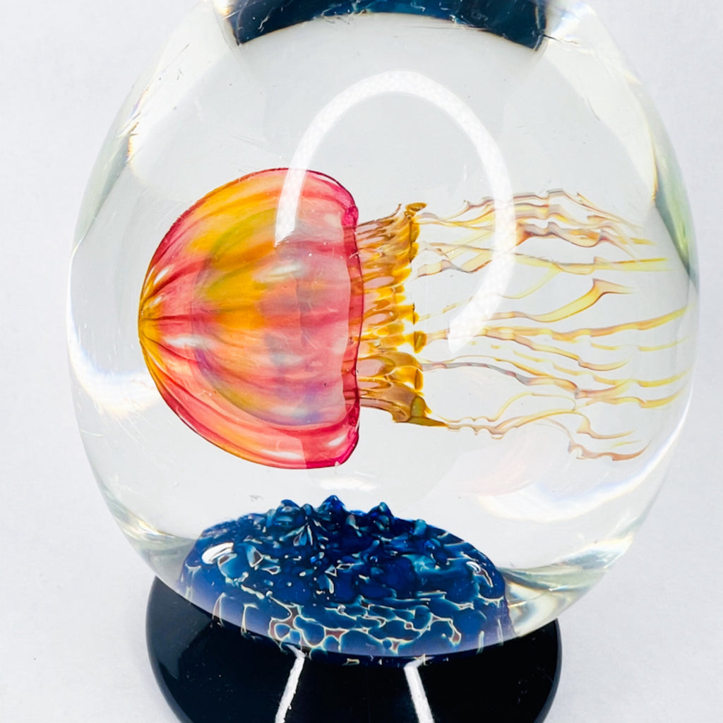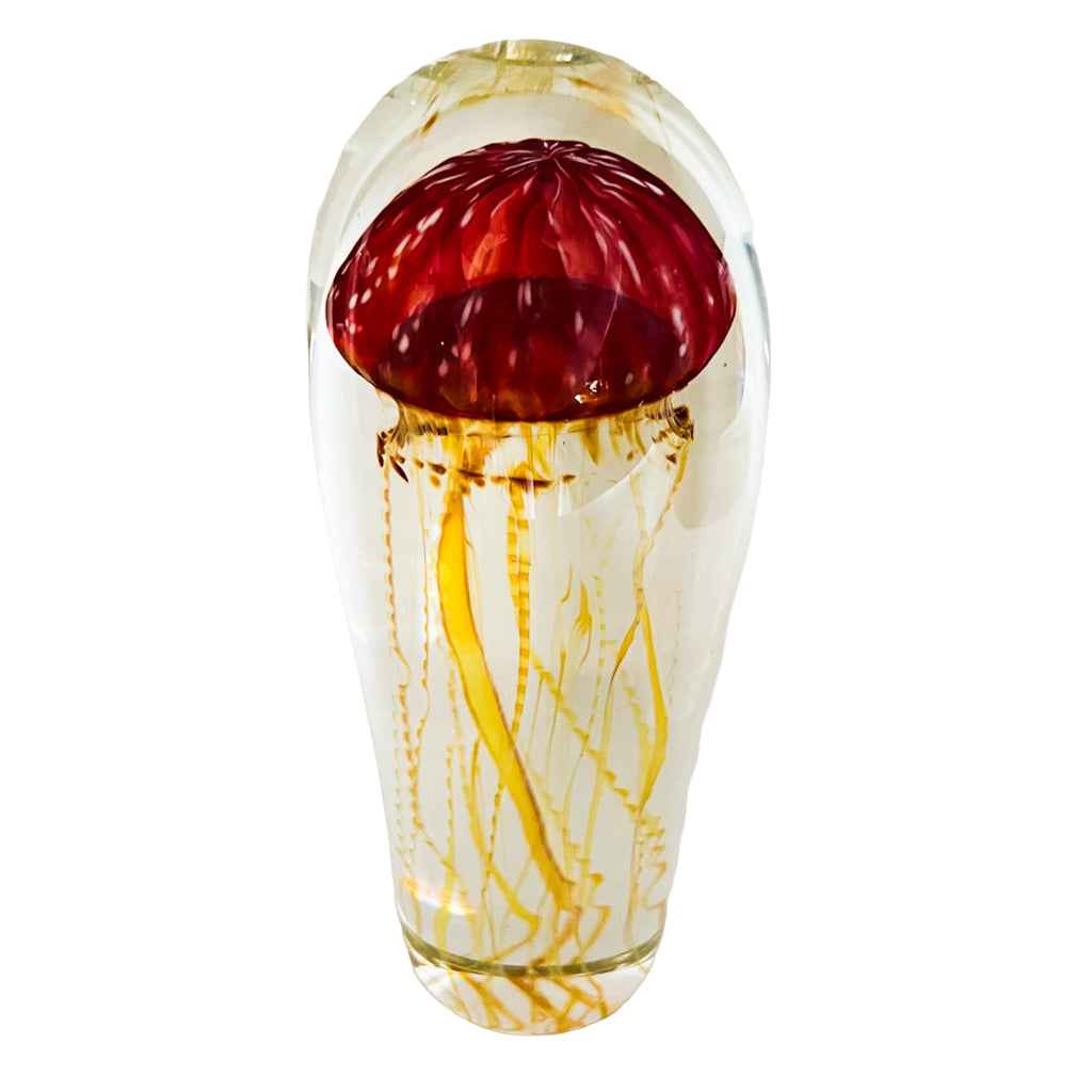 Richard Satava Art Glass Ruby Moon Jellyfish Sculpture Signed | 2839-06