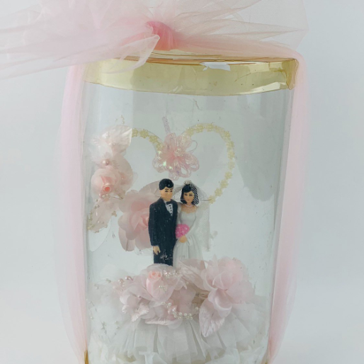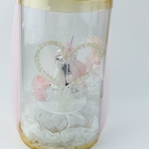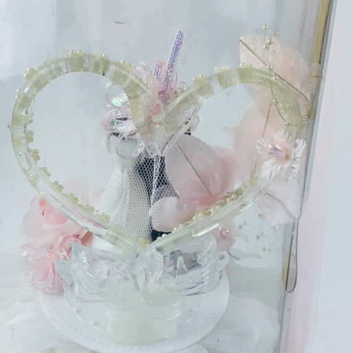 Vintage Wedding Bride Groom Cake Topper Heart Tulle Platform