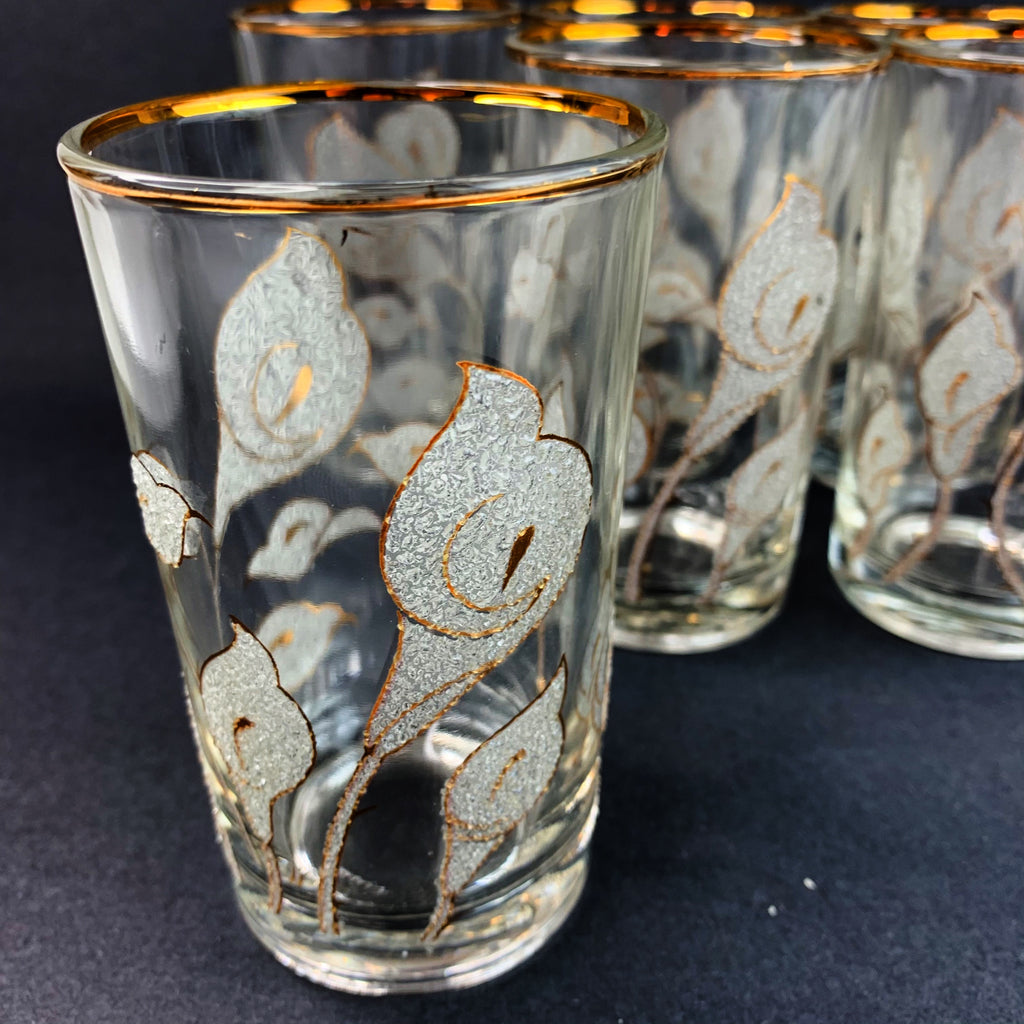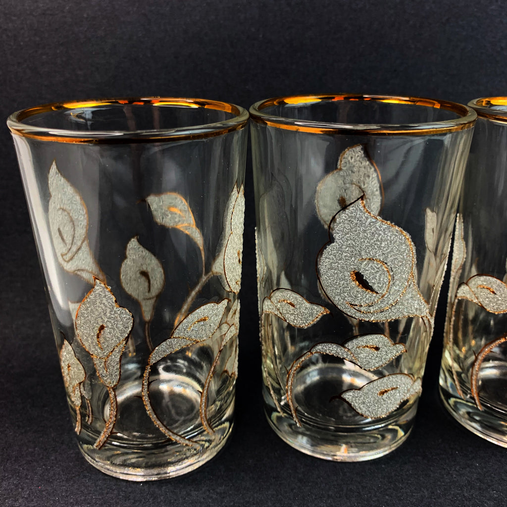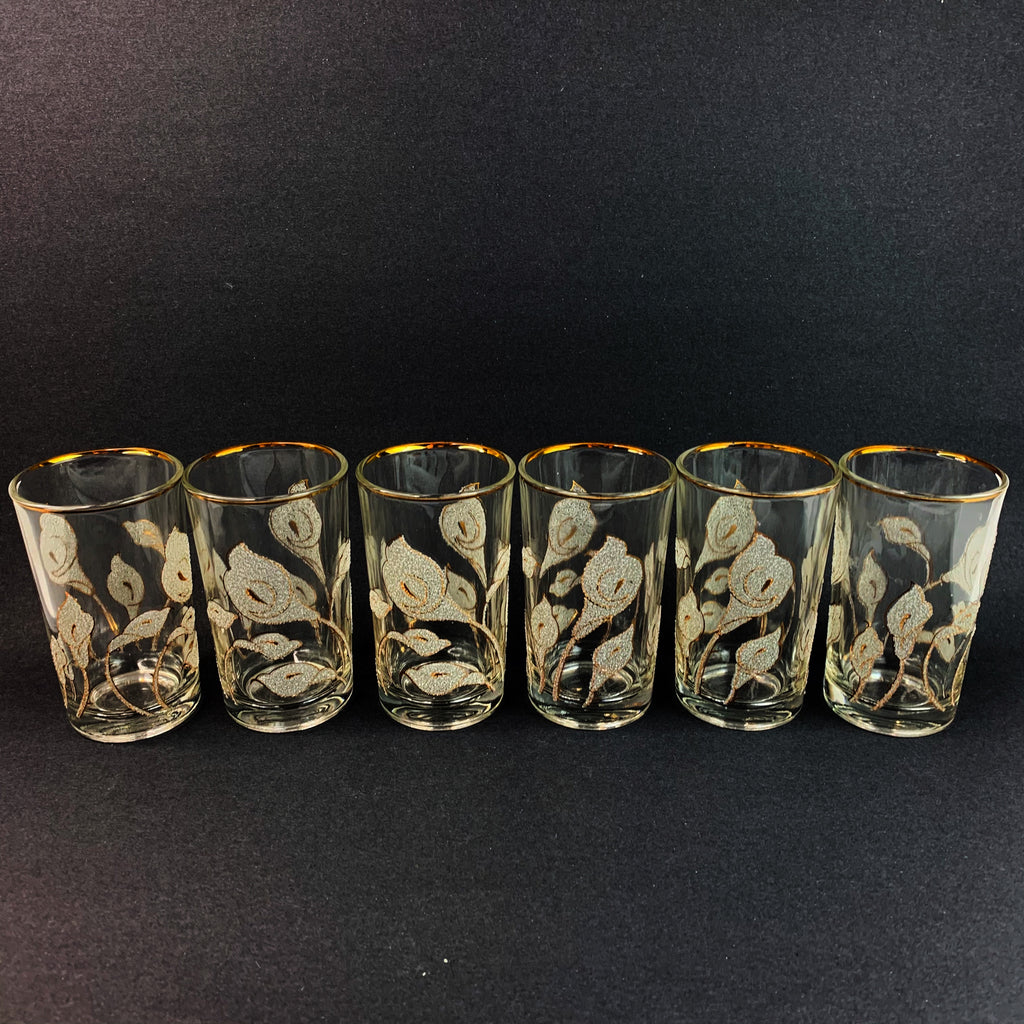 Vintage Lily Embossed Gold Rim Drinking Glasses