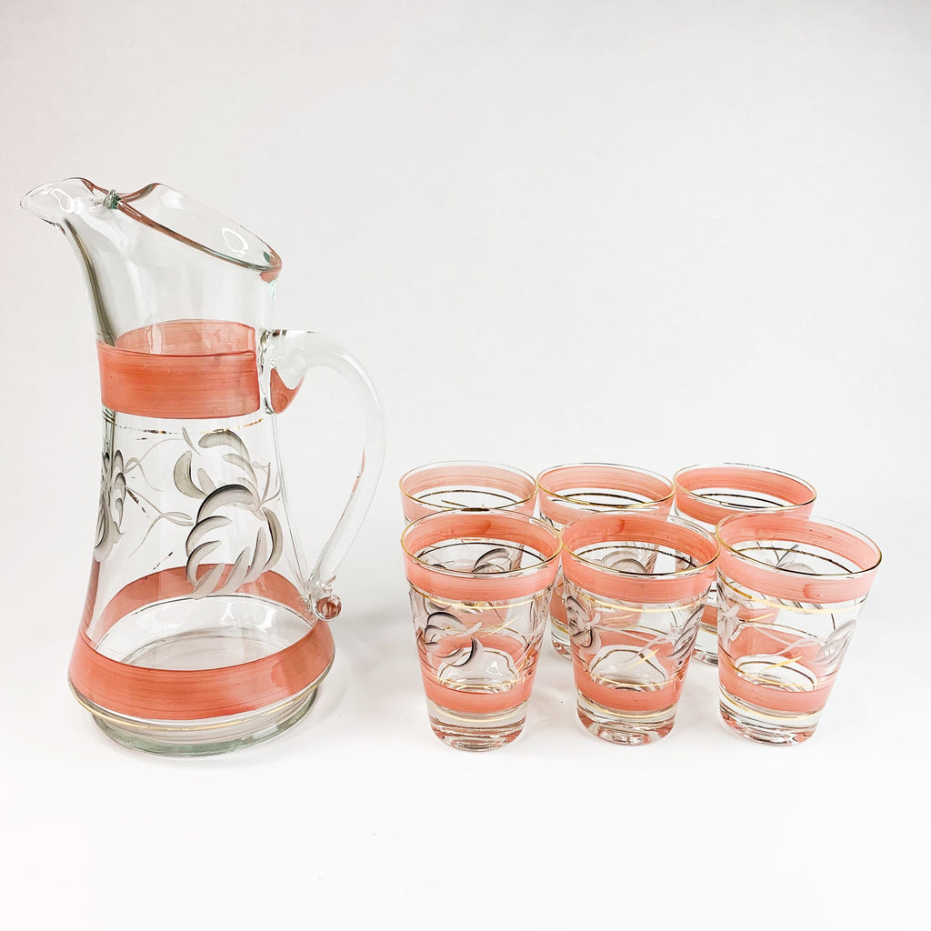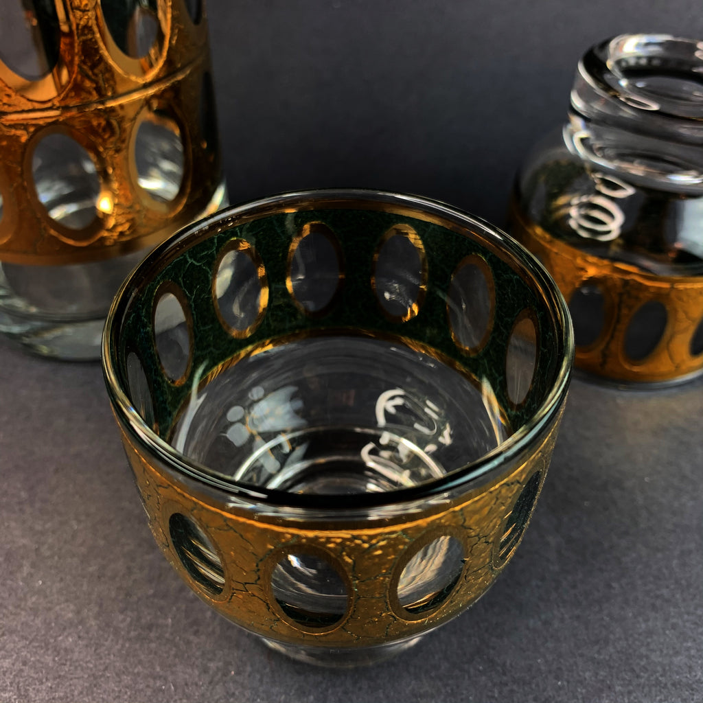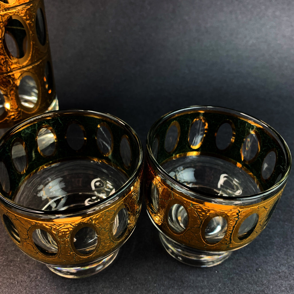 Vintage MCM Culver Antiqua Barware Pitcher & Glasses