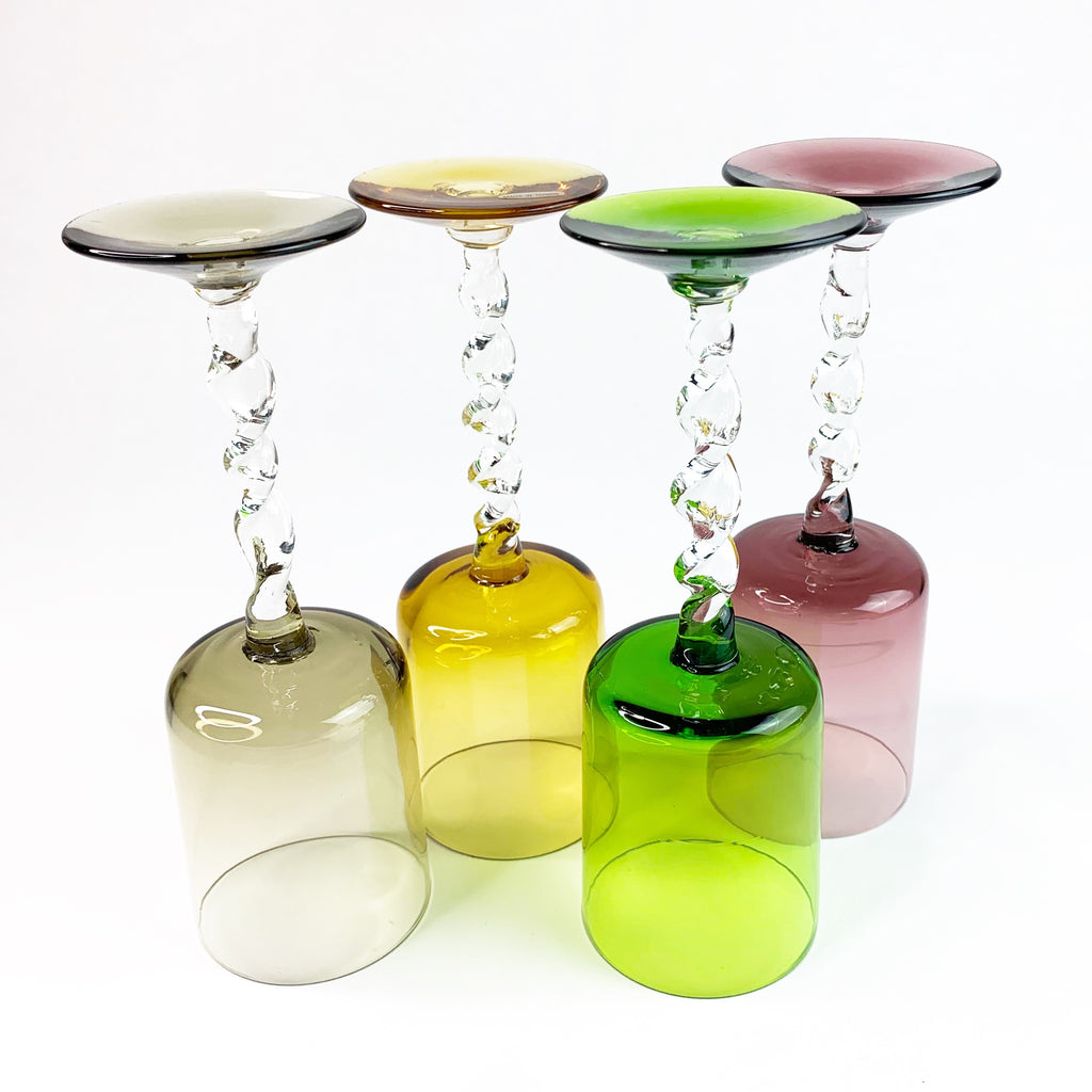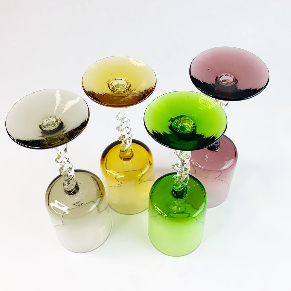 Vintage Champagne Spiral Twist Stem Drinking Glasses