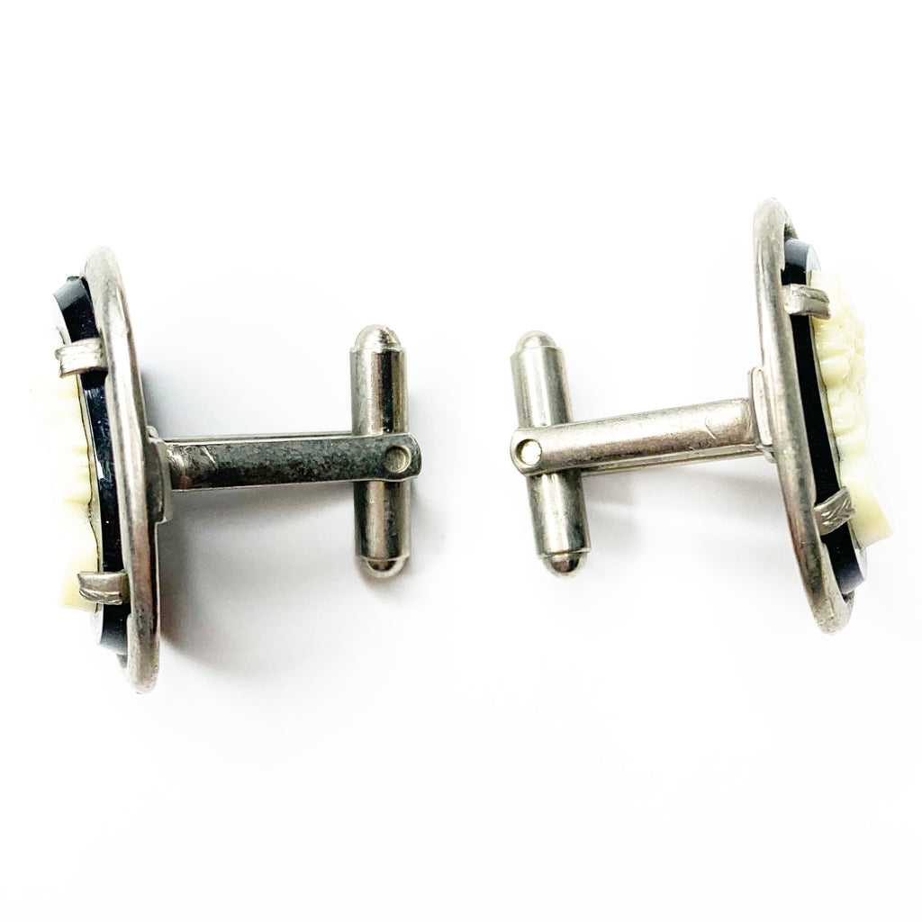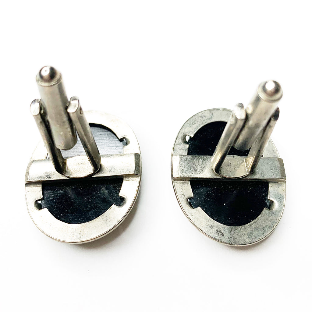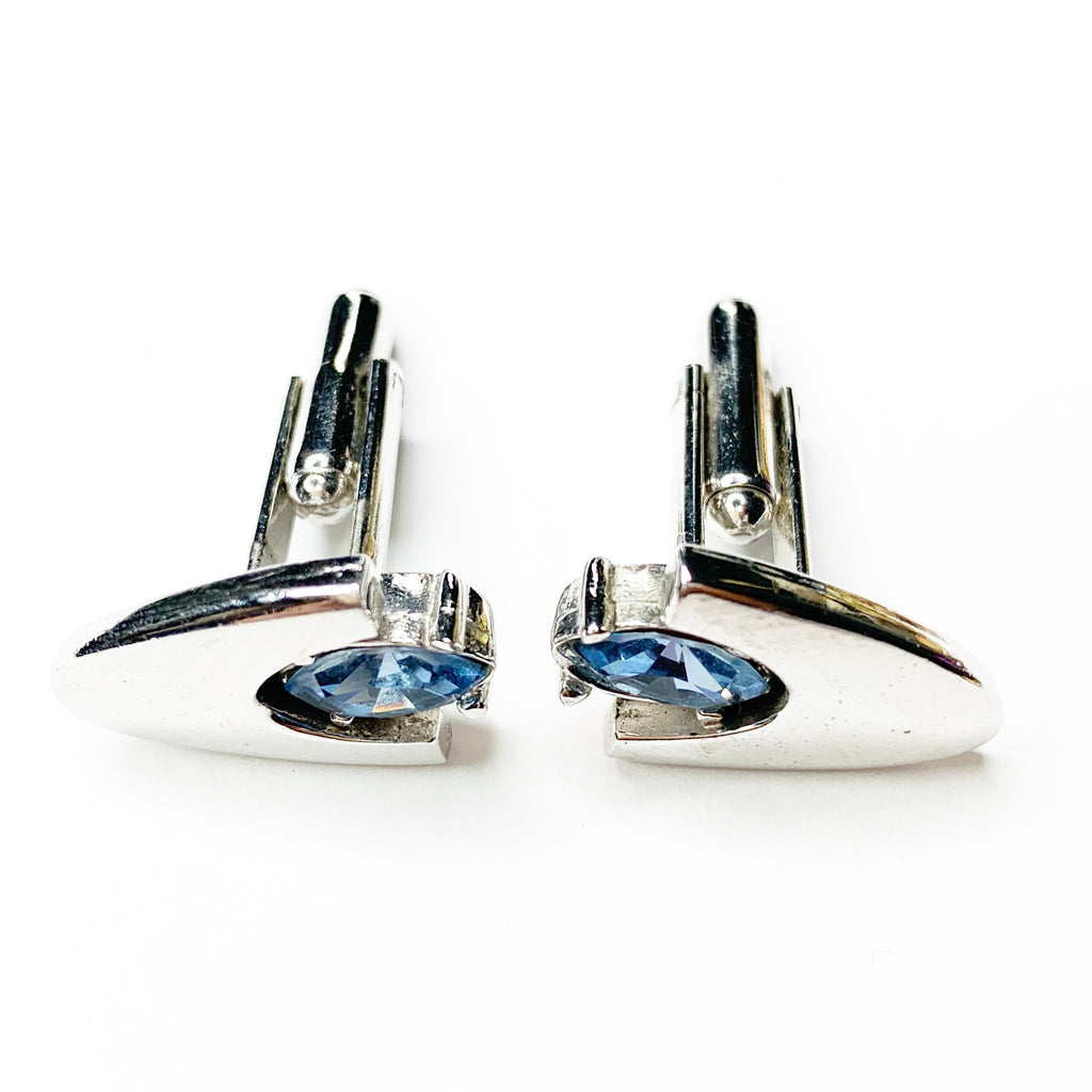 Vintage Mid Century Silver Blue Stone Cuff Links
