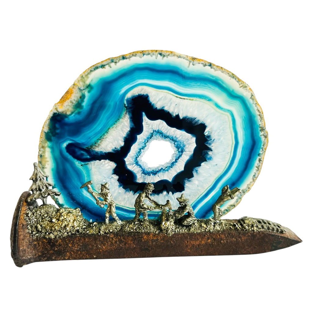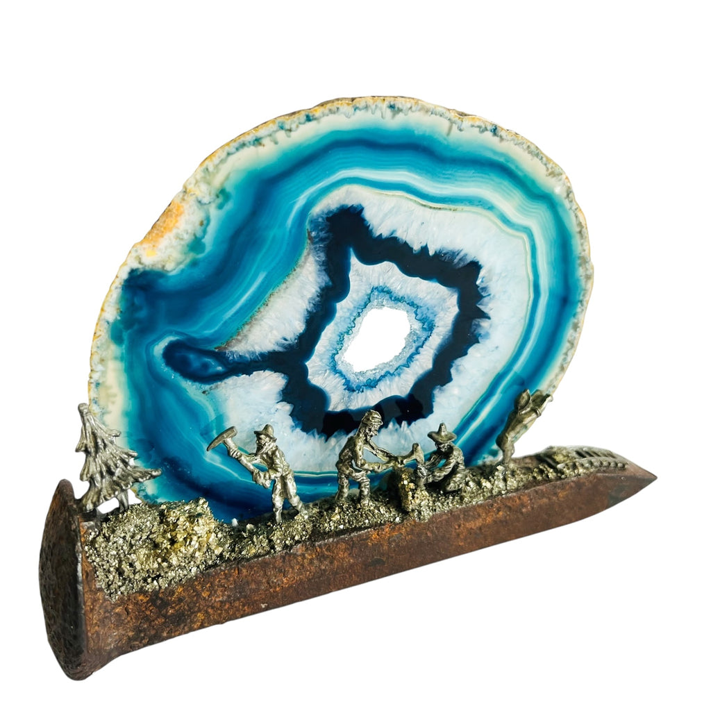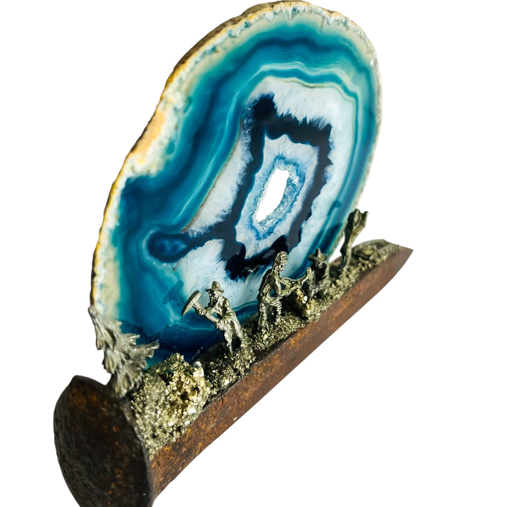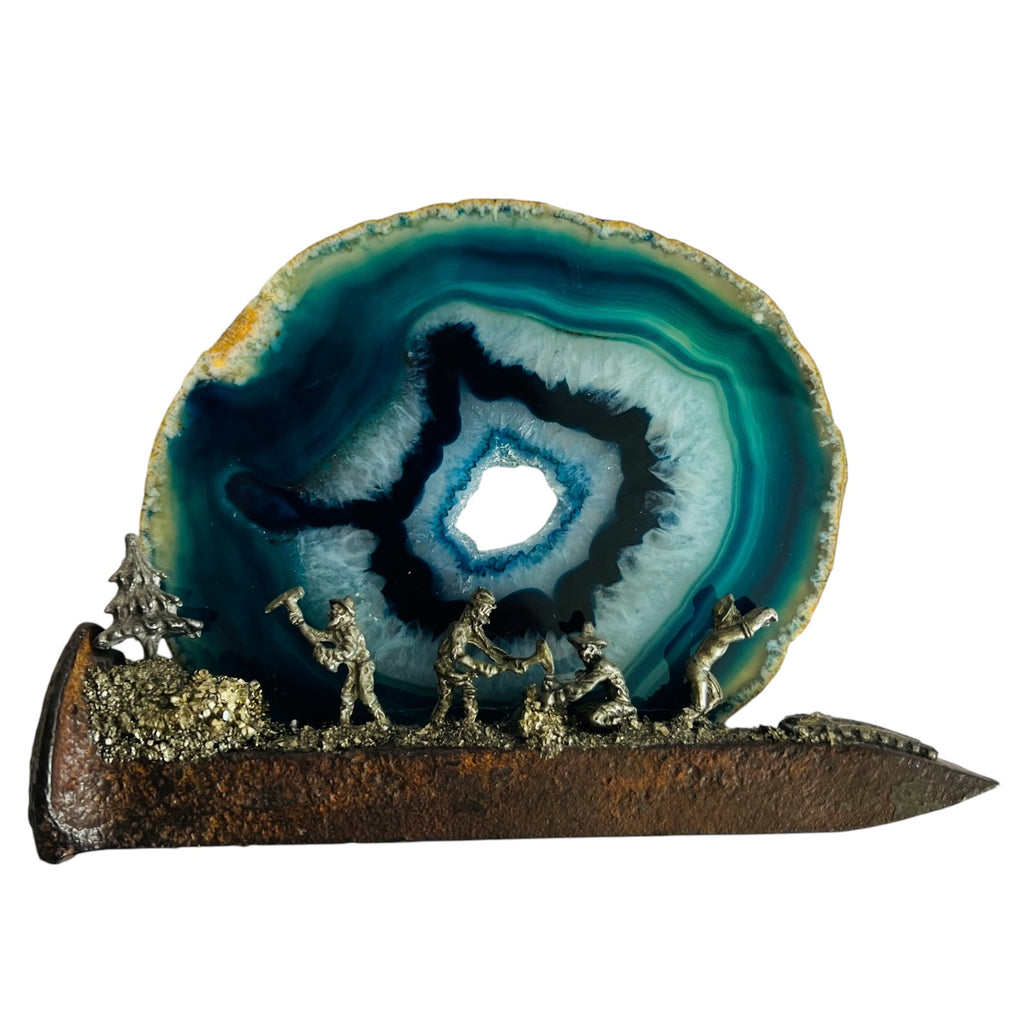 Black Onyx Gemstone Globe w/ Brushed Nickel 3 Legged Stand