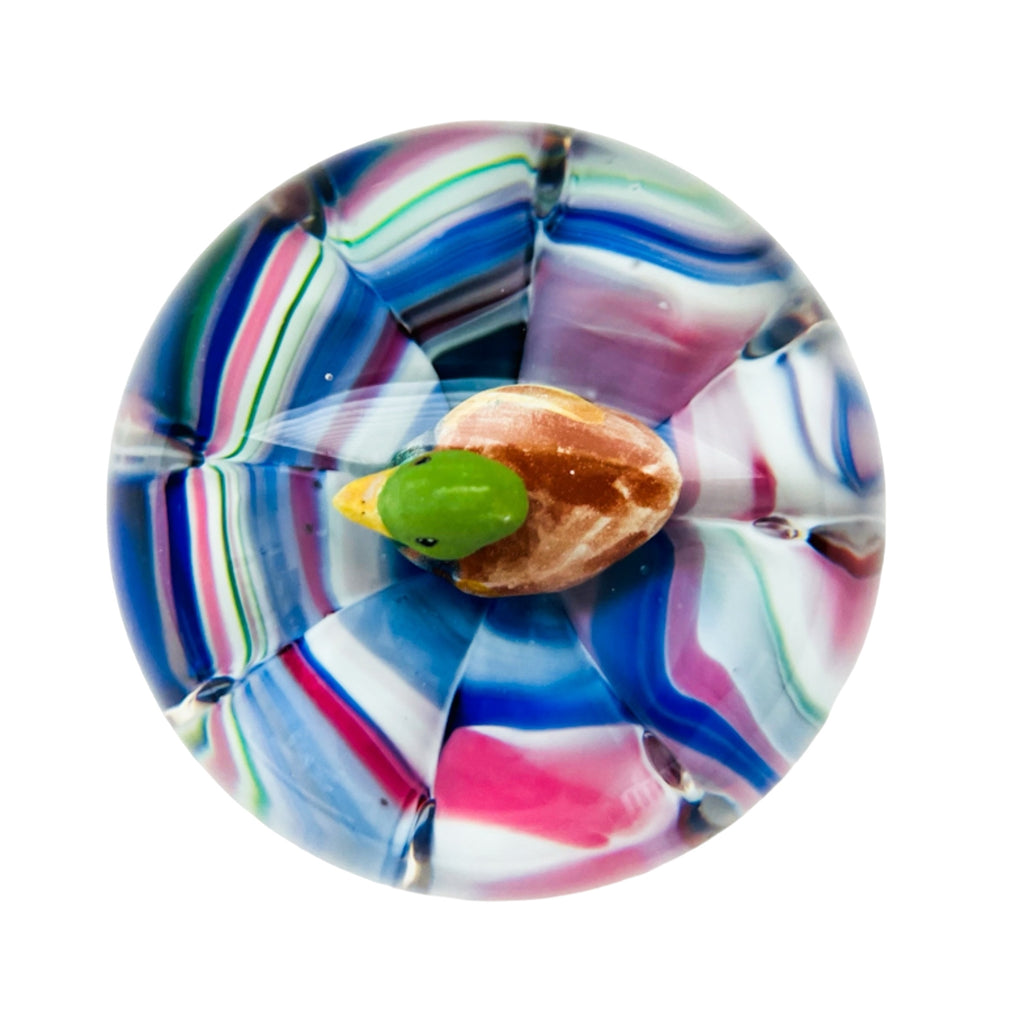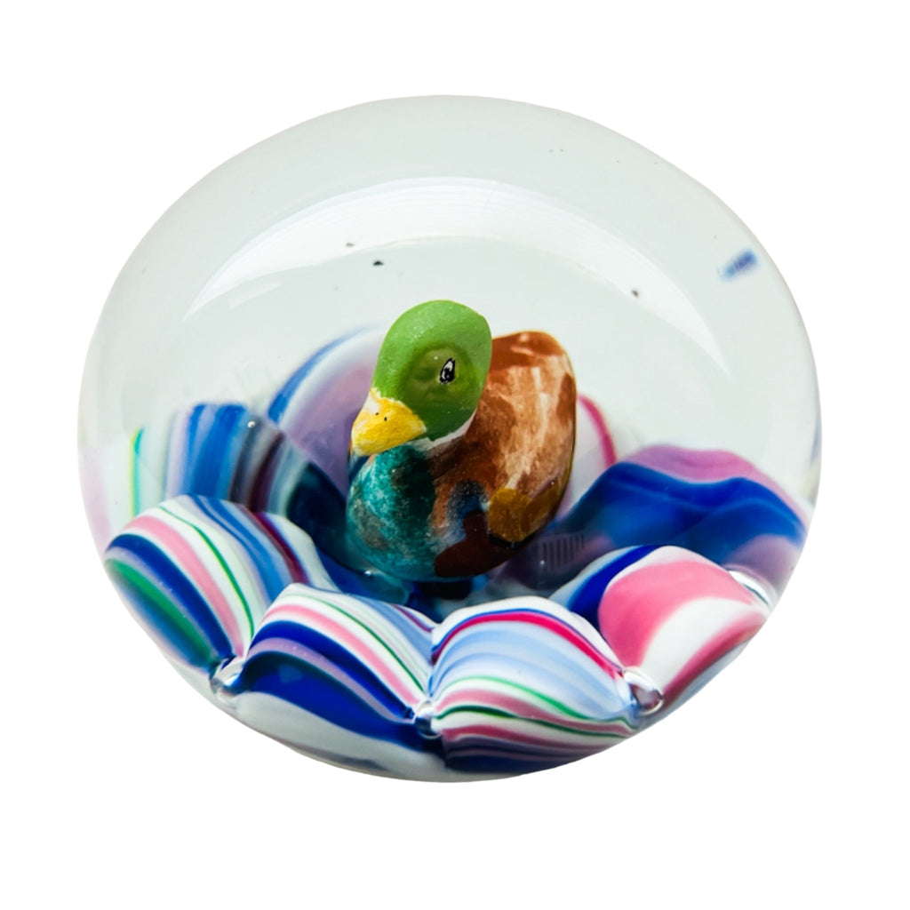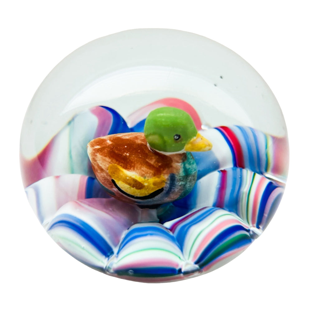 Vintage Duck Decoy Art Glass Round Paperweight
