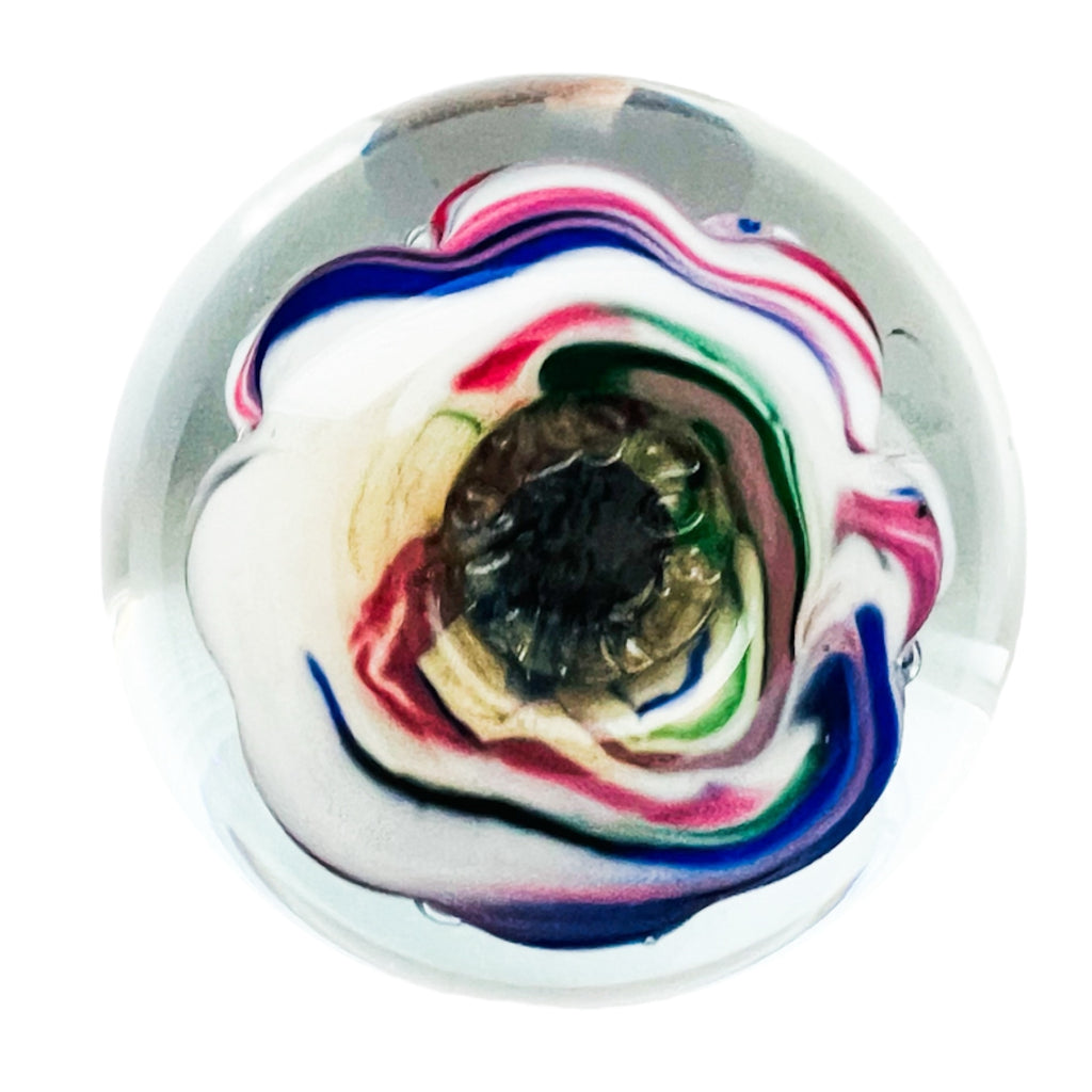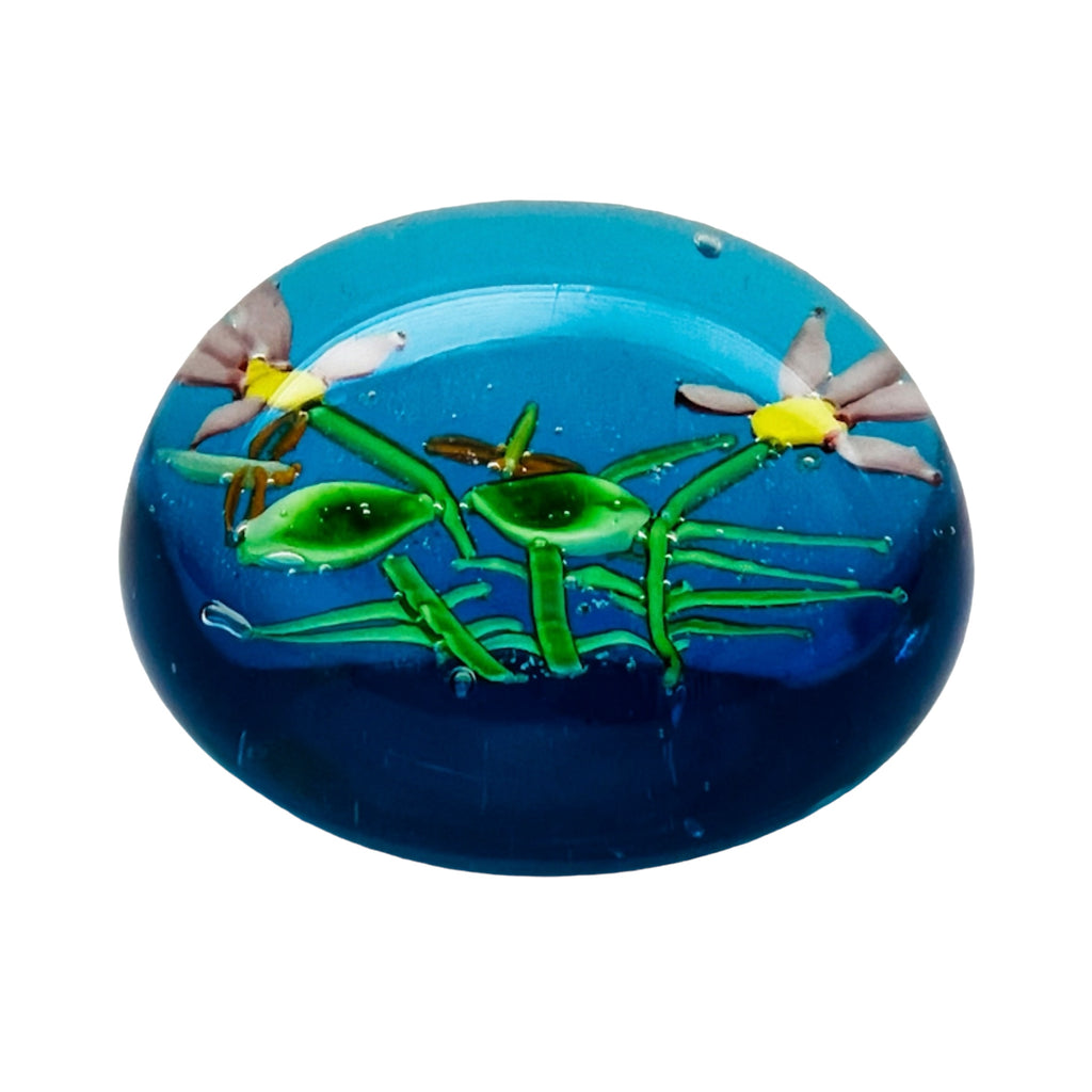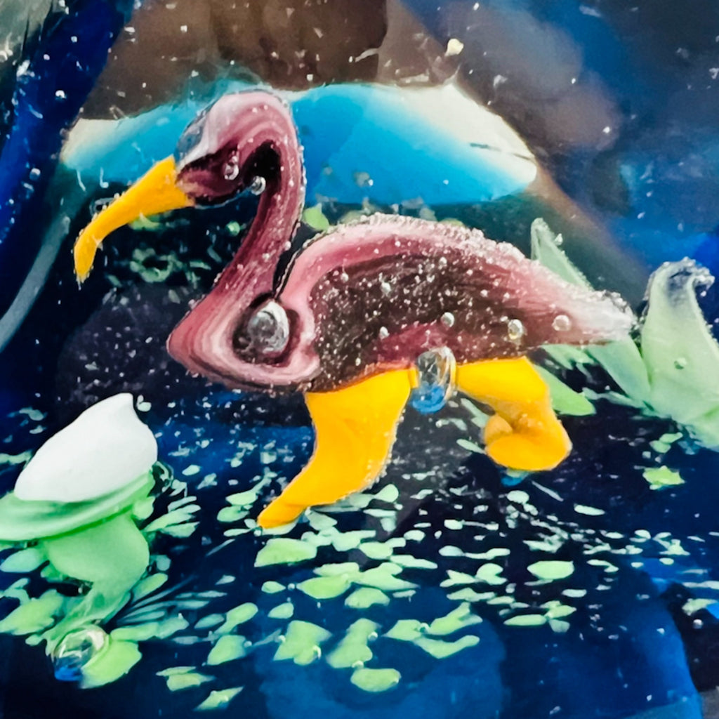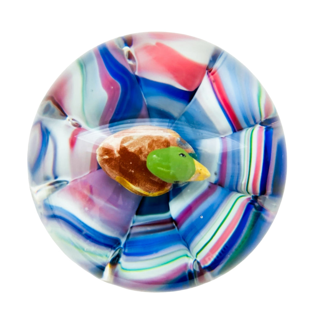 Vintage Duck Decoy Art Glass Round Paperweight
