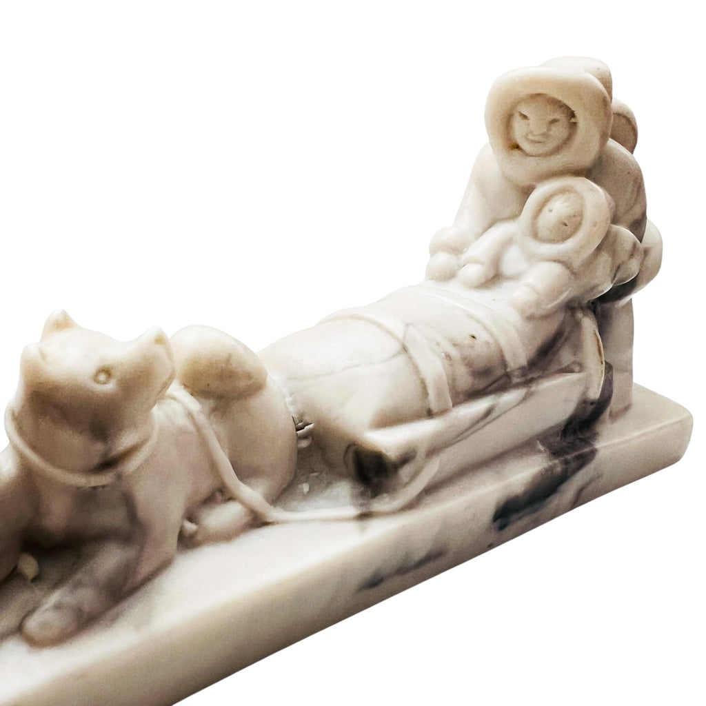 Pearlite Marblecraft Inuit Eskimo Carving With 3 Sled Dogs Figurine Statue