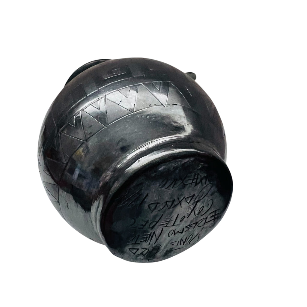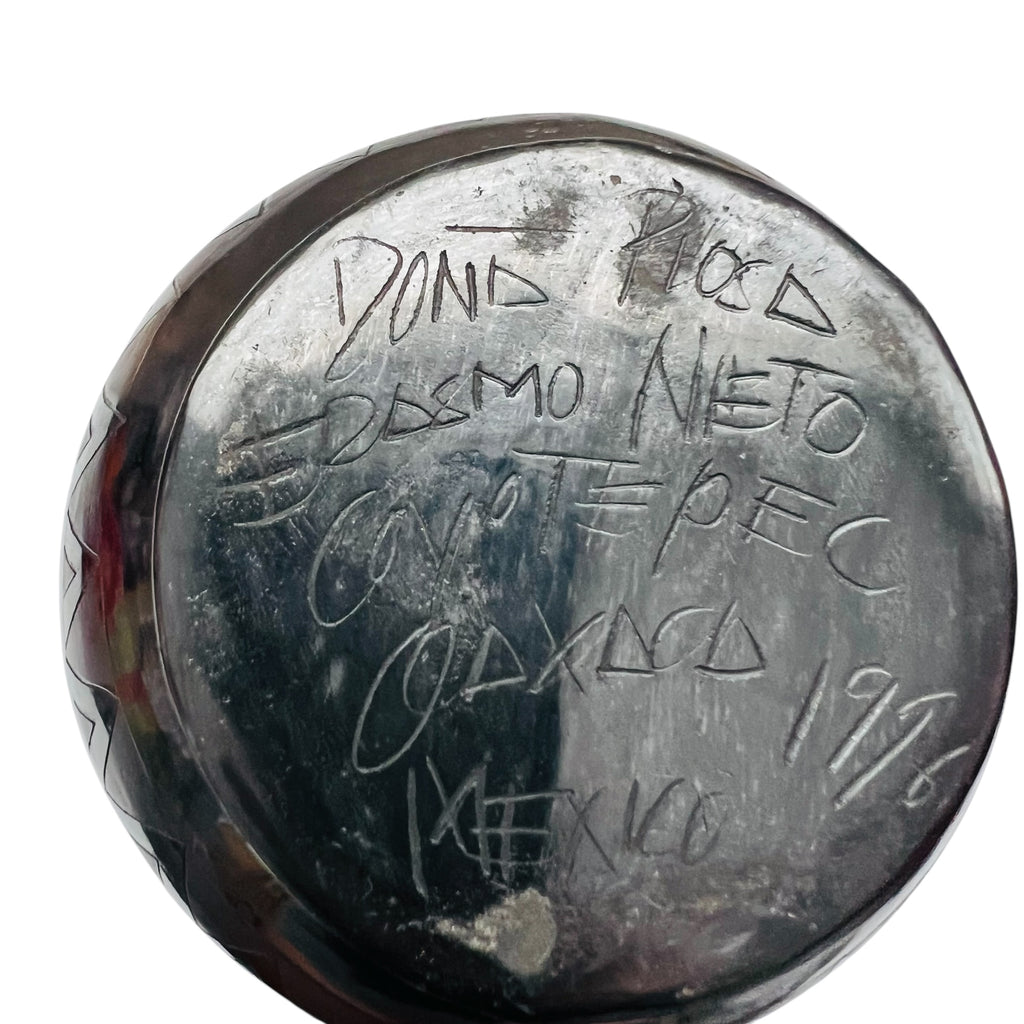Vintage Artist Signed Blackware Mexico Patterned Pottery Vase