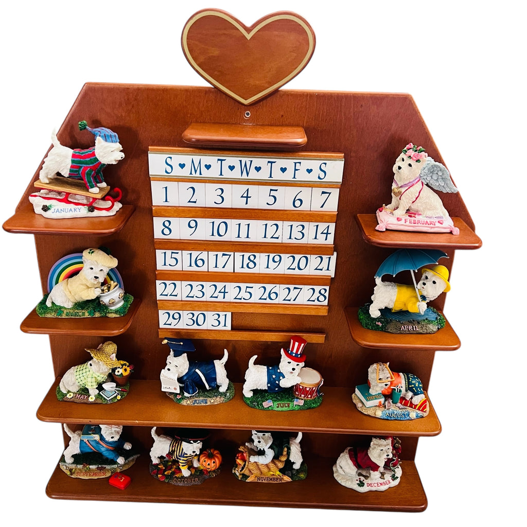 Vintage Danbury Westie White Terrier Perpetual Calendar Wood Heart Wall Display