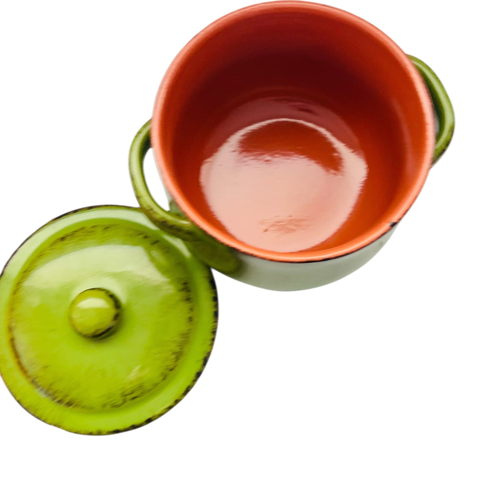 Vintage De Silva Terracotta Rustic Double Handle Green Pot with Lid