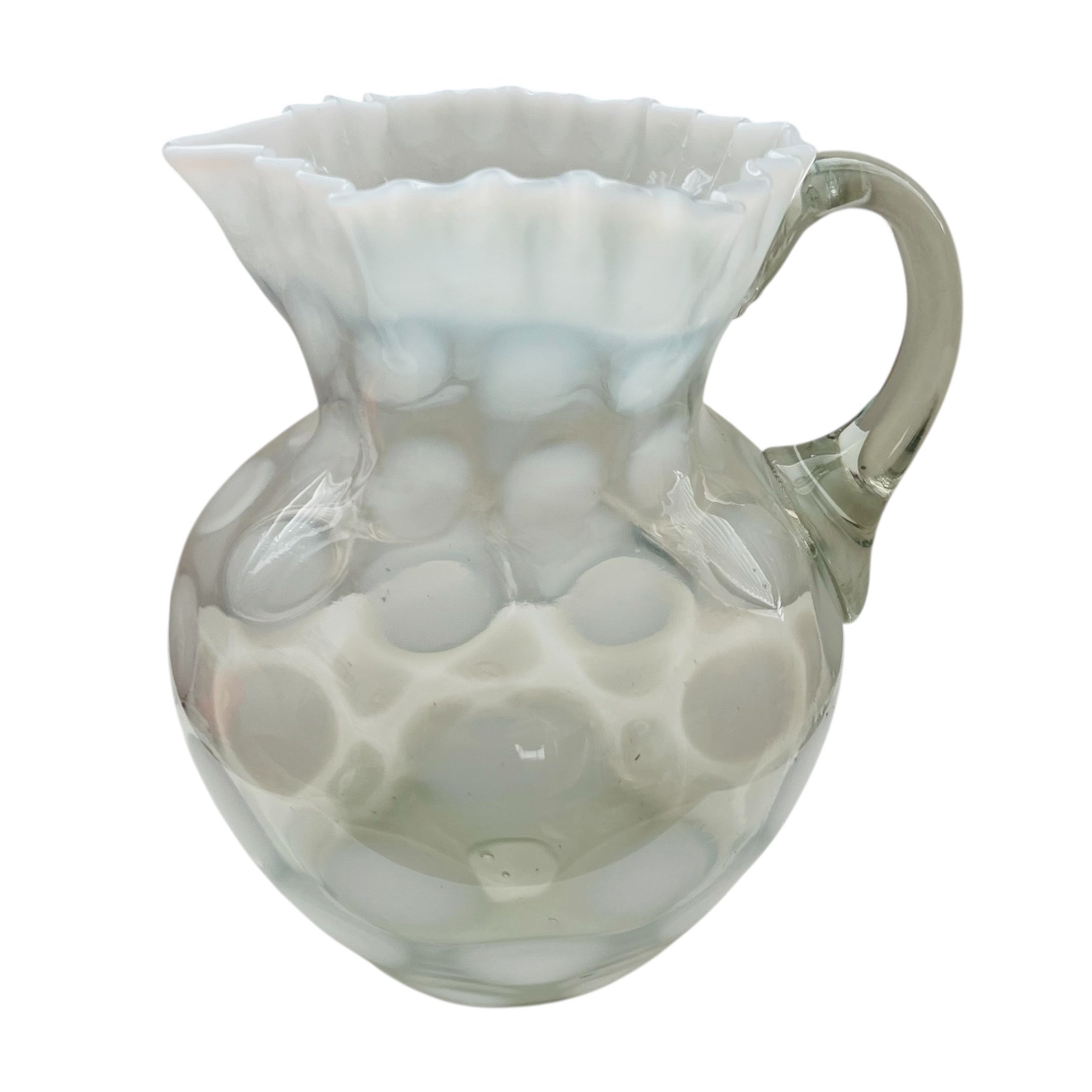 Vintage Fenton Art Glass Opalescent Large Dot Ruffled Pitcher