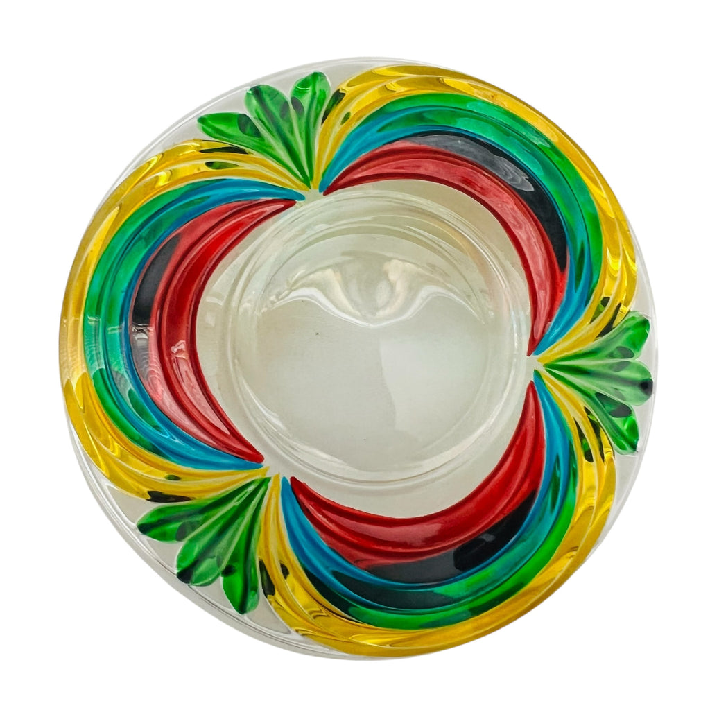 Vintage Murano Italy Glass Trinket Dish Hand Painted Bowl