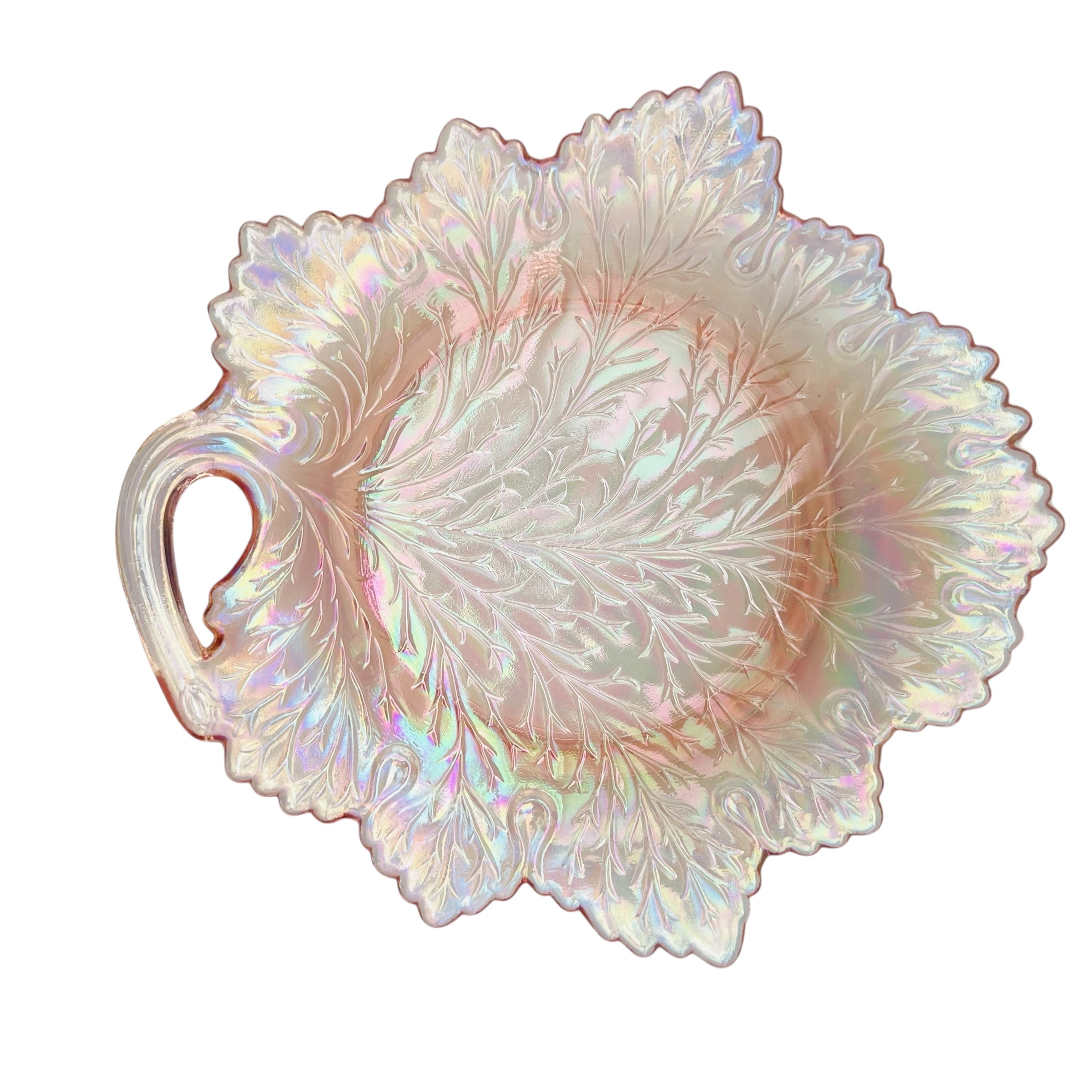 Vintage Rose Pink Iridescent Leaf Serving Dish