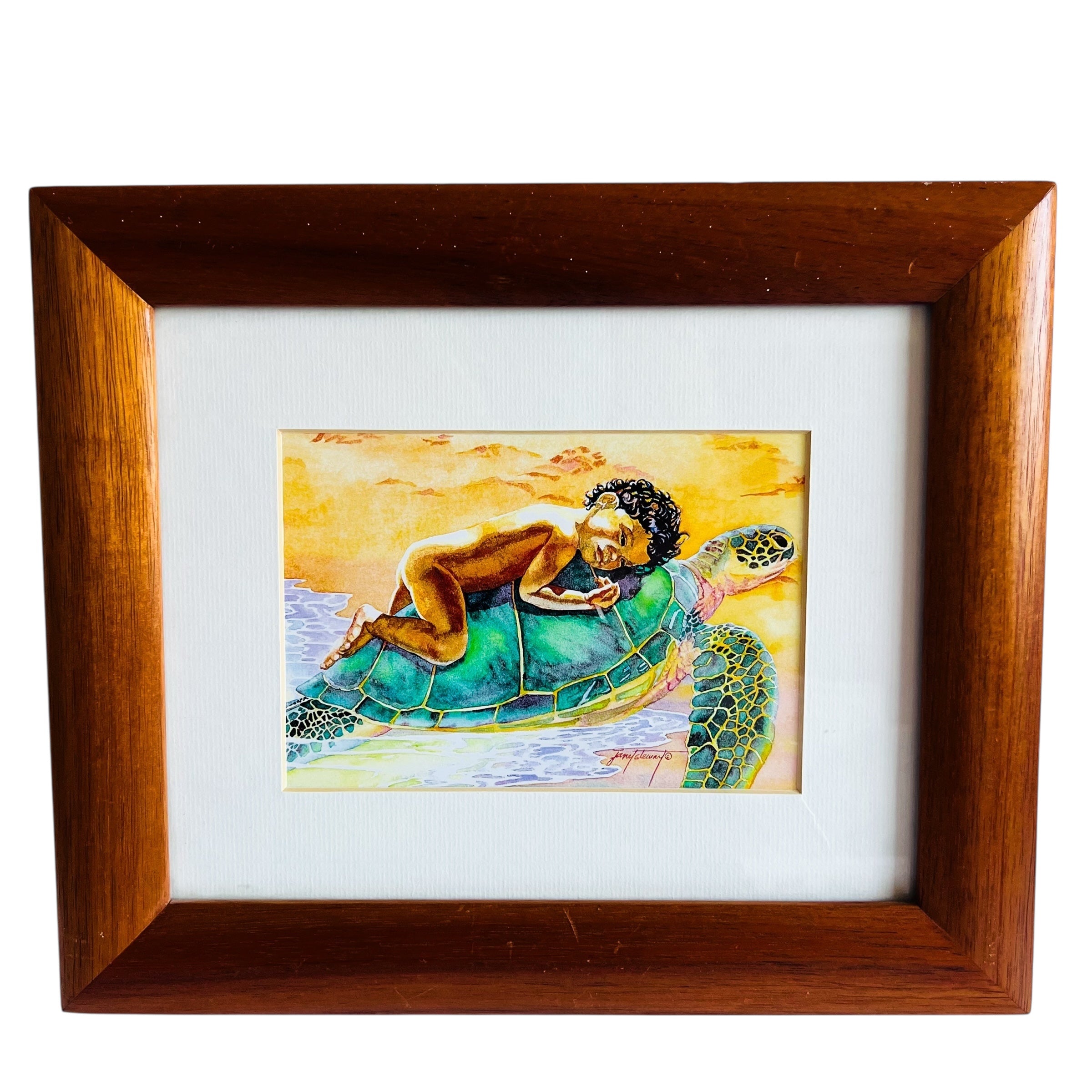 William & Zimmer The Turtle Nap Hawaiian Child Wood Framed