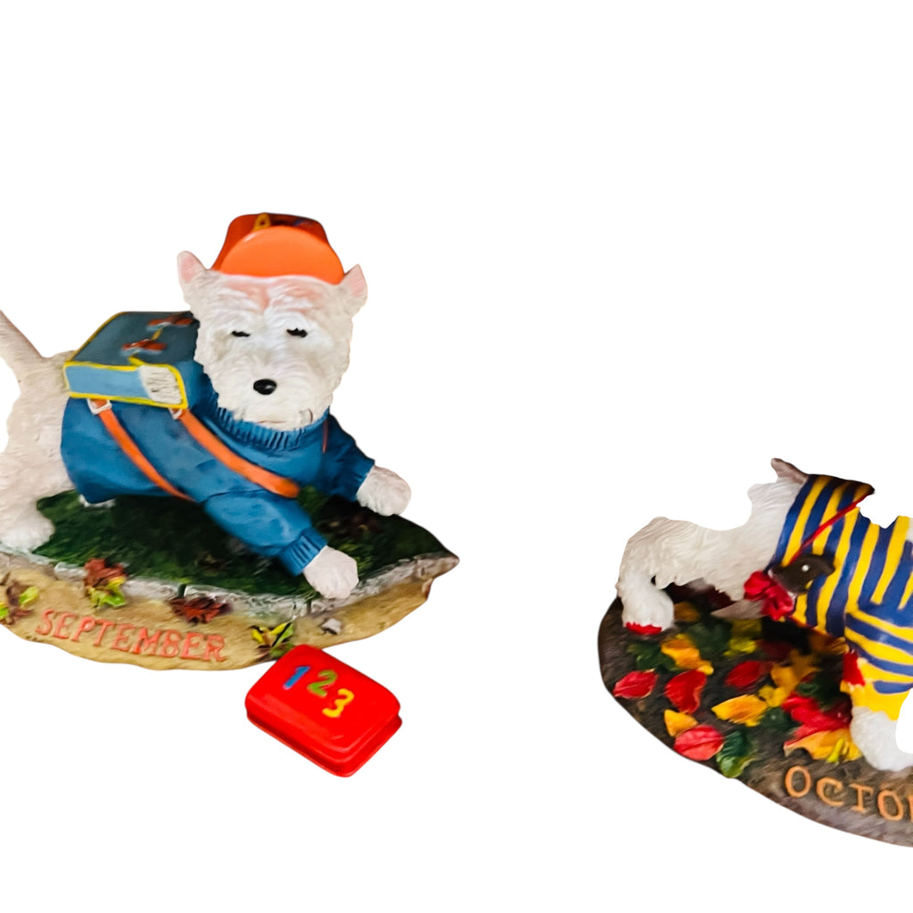 Vintage Danbury Westie White Terrier Perpetual Calendar Wood Heart Wall Display