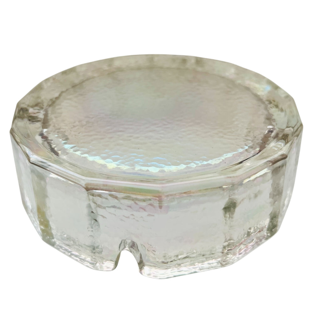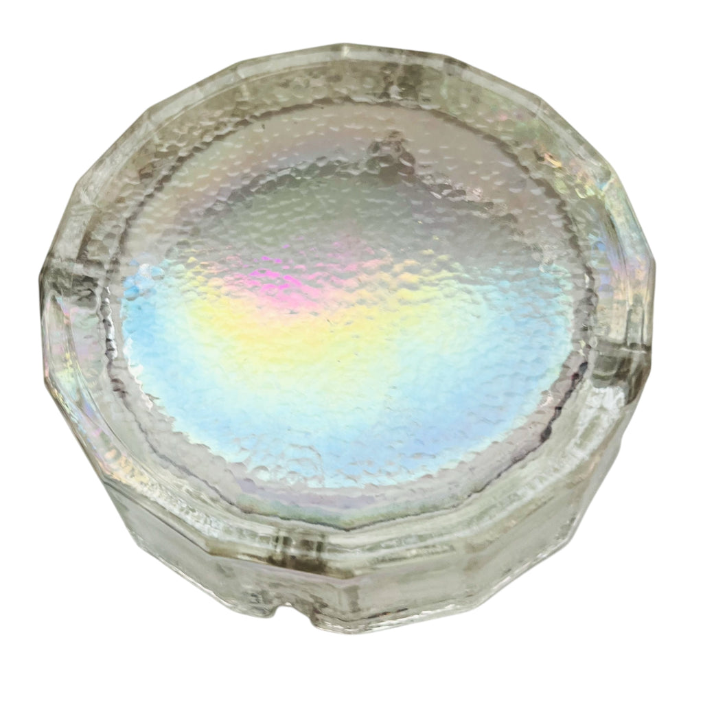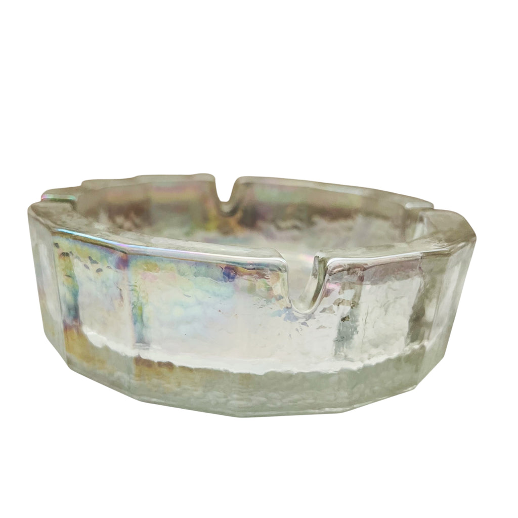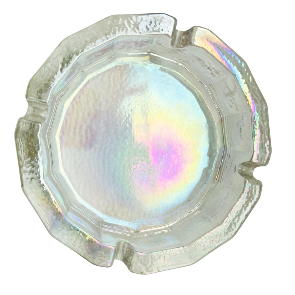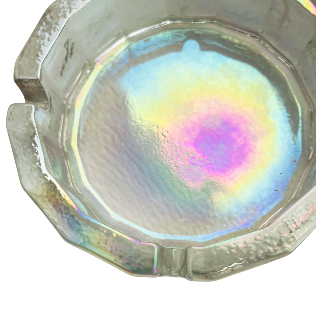Vintage MCM Opal Iridescent Glass Textured Hexagonal Ashtray