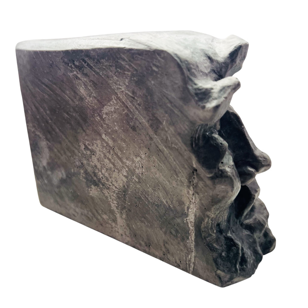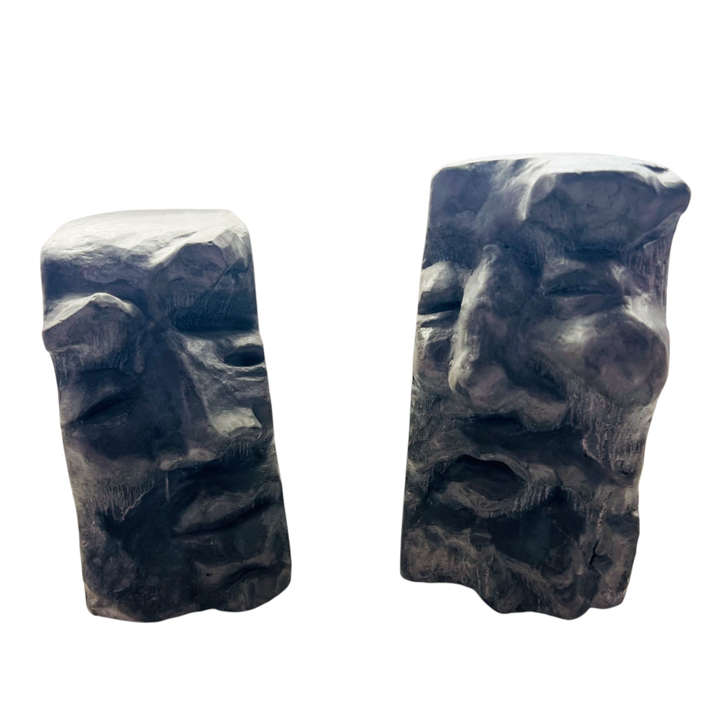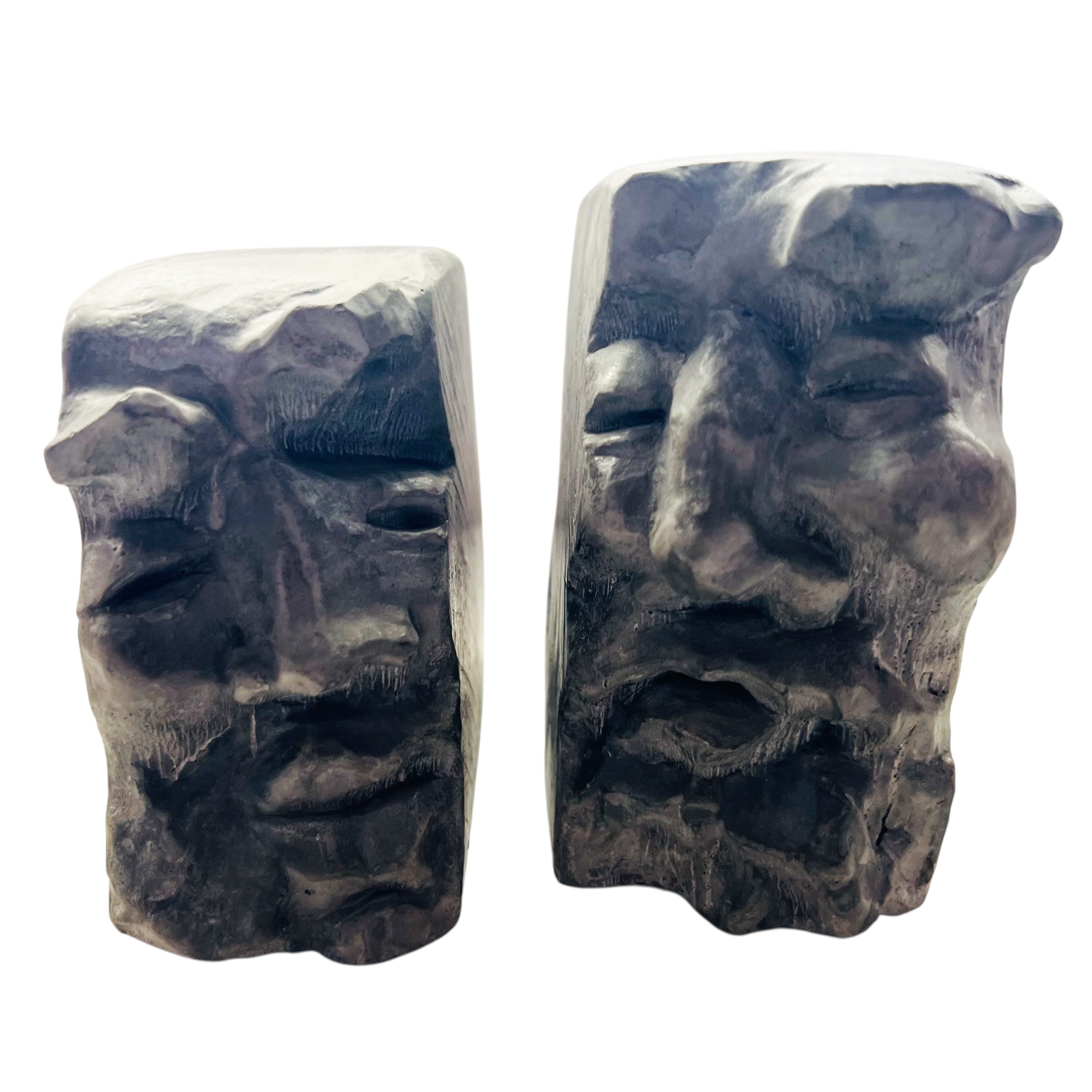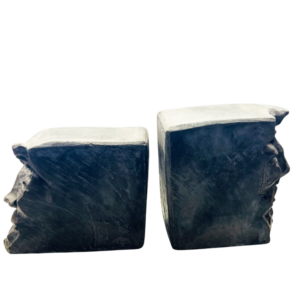 Vintage 1994 Eduardo Straugh Cast Stone Face Bookends -A Pair
