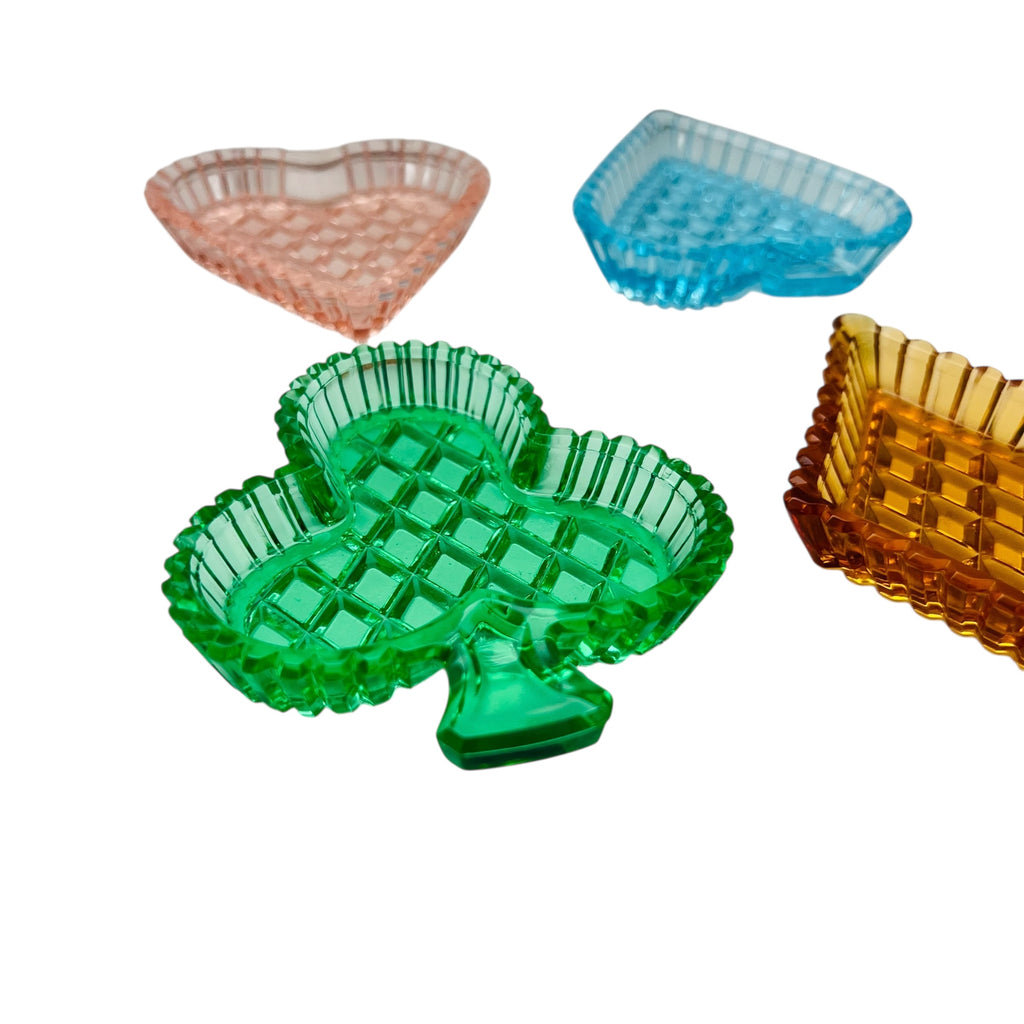 Vintage Set of 4 Pressed Glass Playing Card Suit Trinket Dishes