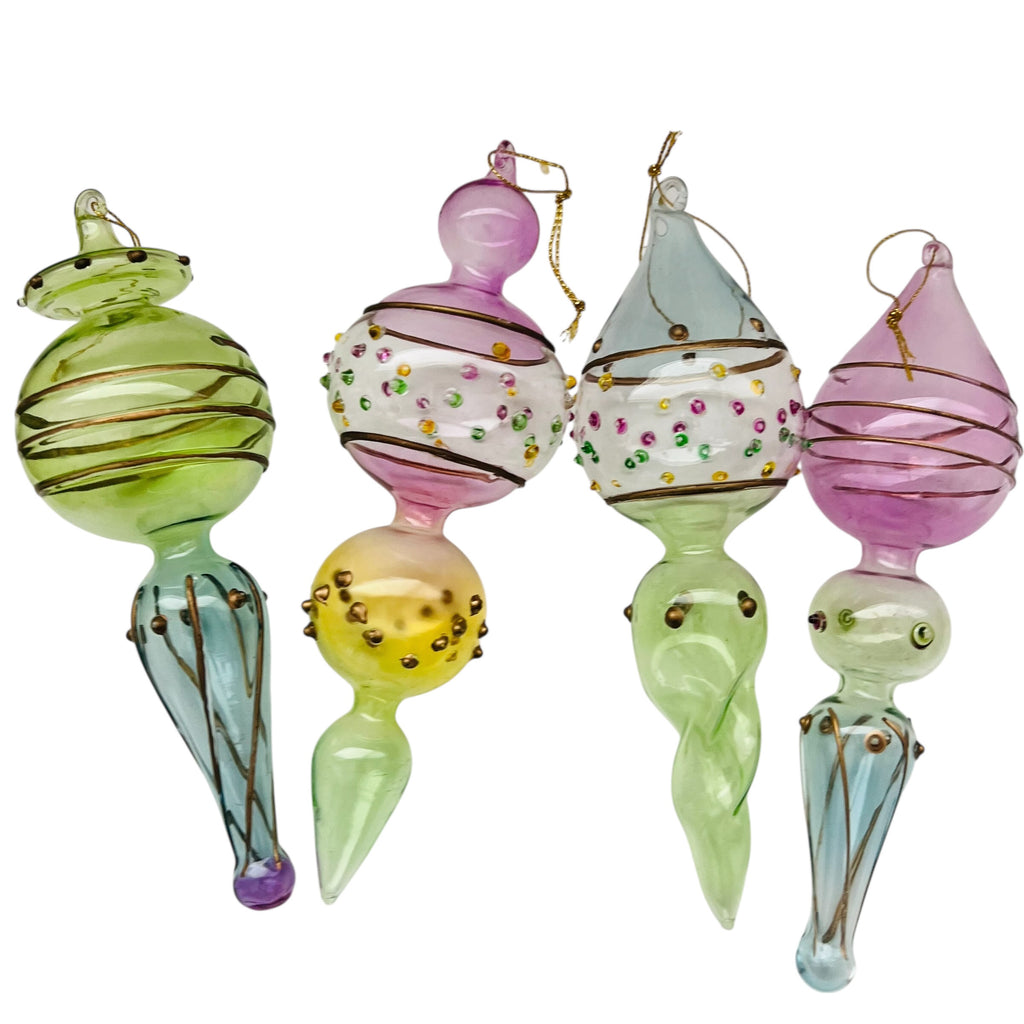 Vintage Glass Christmas Blown Glass Pastel Finial Ornaments