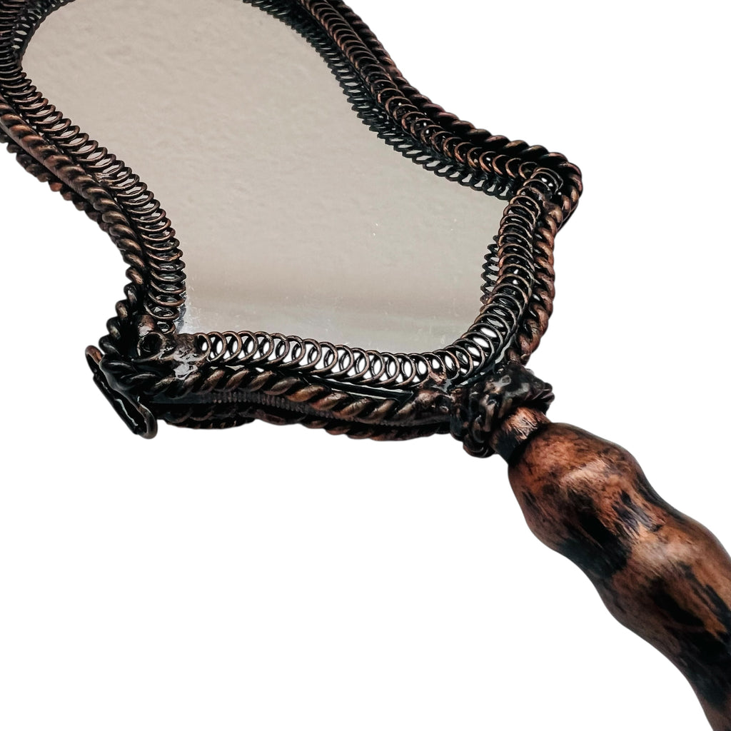 Vintage Wayne M. Kelski Embroidered Handheld Mirror with Floral Design